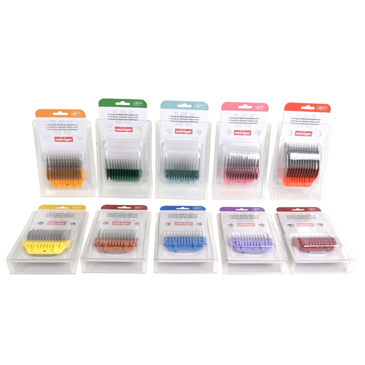 Heiniger Wide W-Snap-On Stainless Steel Comb Set – Durable Spacers for Wide Blades, 8 Pieces