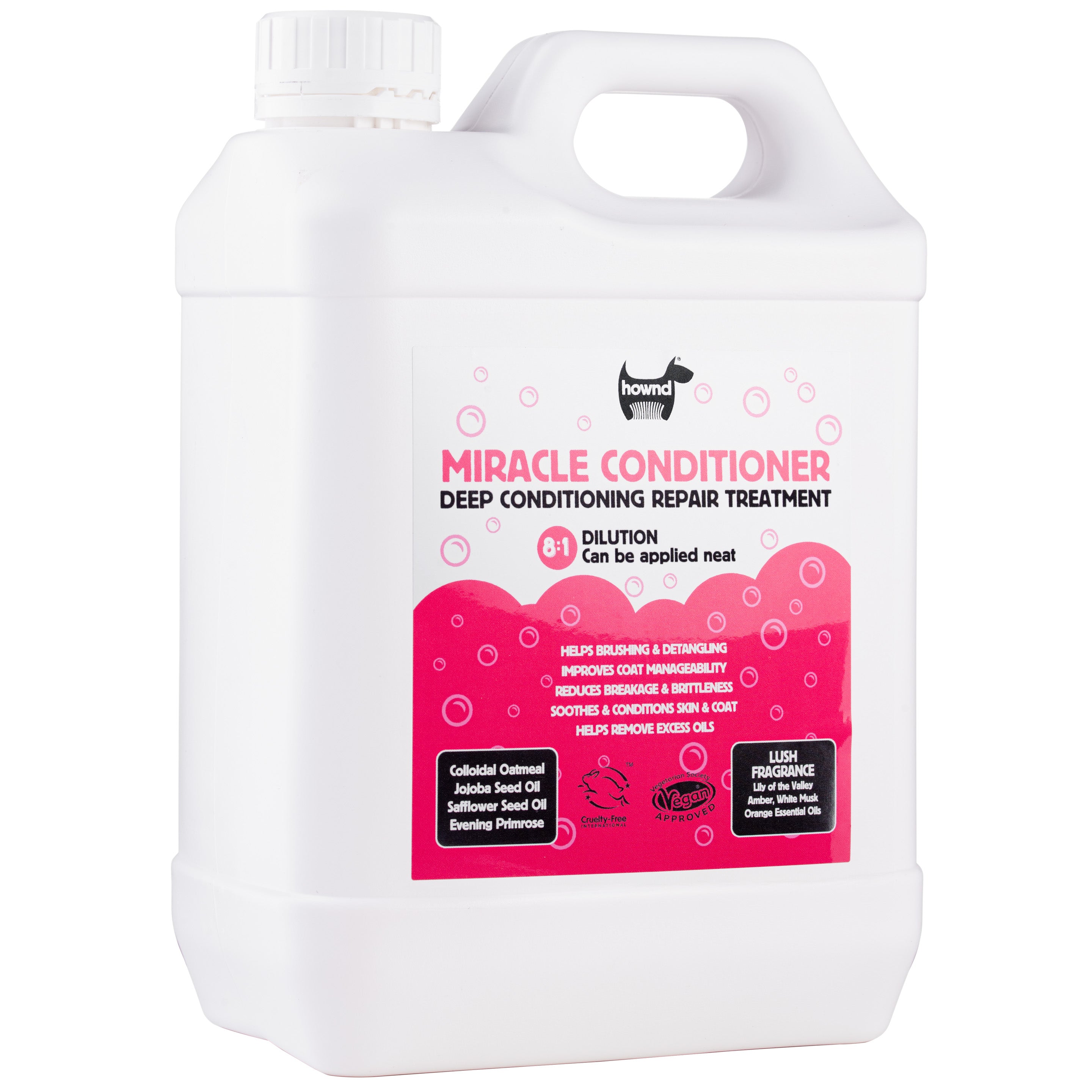 Hownd Miracle Conditioner is a regenerating and highly moisturizing treatment for dry, dull, and lifeless coats, suitable for all breeds of dogs, cats, and horses.