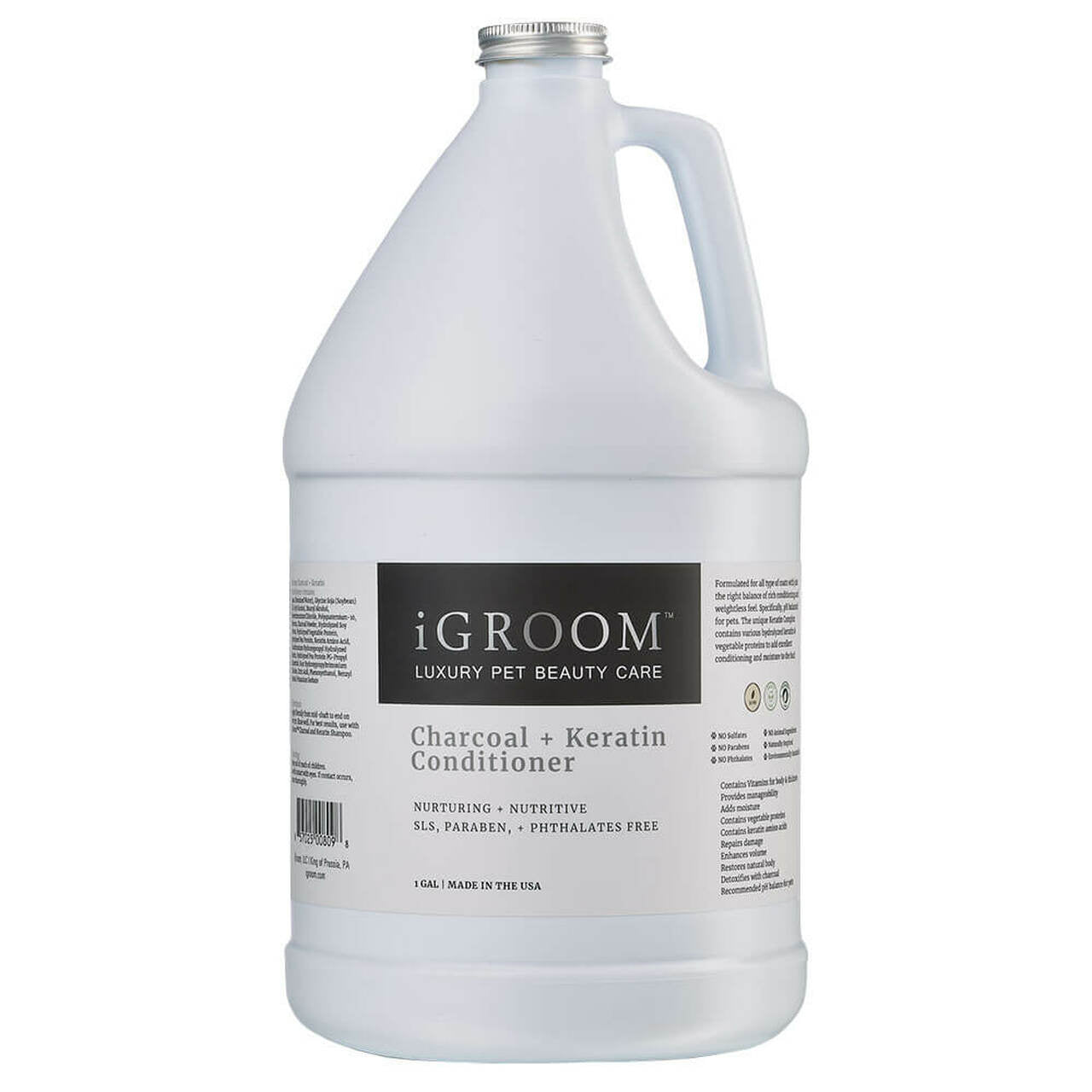 The iGroom Charcoal Keratin Conditioner contains bamboo charcoal, which absorbs impurities, unpleasant odors, and harmful substances, such as those associated with air pollution and smog. The keratin-protein complex rebuilds the hair on multiple levels, with molecules that penetrate deep into the hair shaft, providing proper moisture and strengthening from the inside. By repairing damage to the outer layer of the hair, it provides strength, elasticity, and resilience.