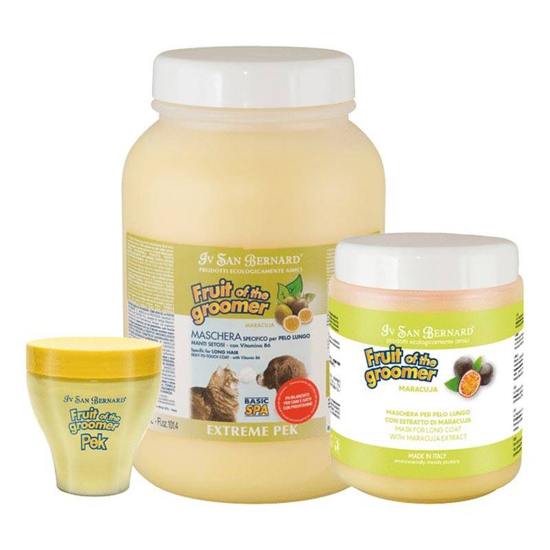 Iv San Bernard Fruit of the Groomer Passion Fruit Mask is designed for dogs and cats, offering antioxidant properties and a pleasant fruity scent.