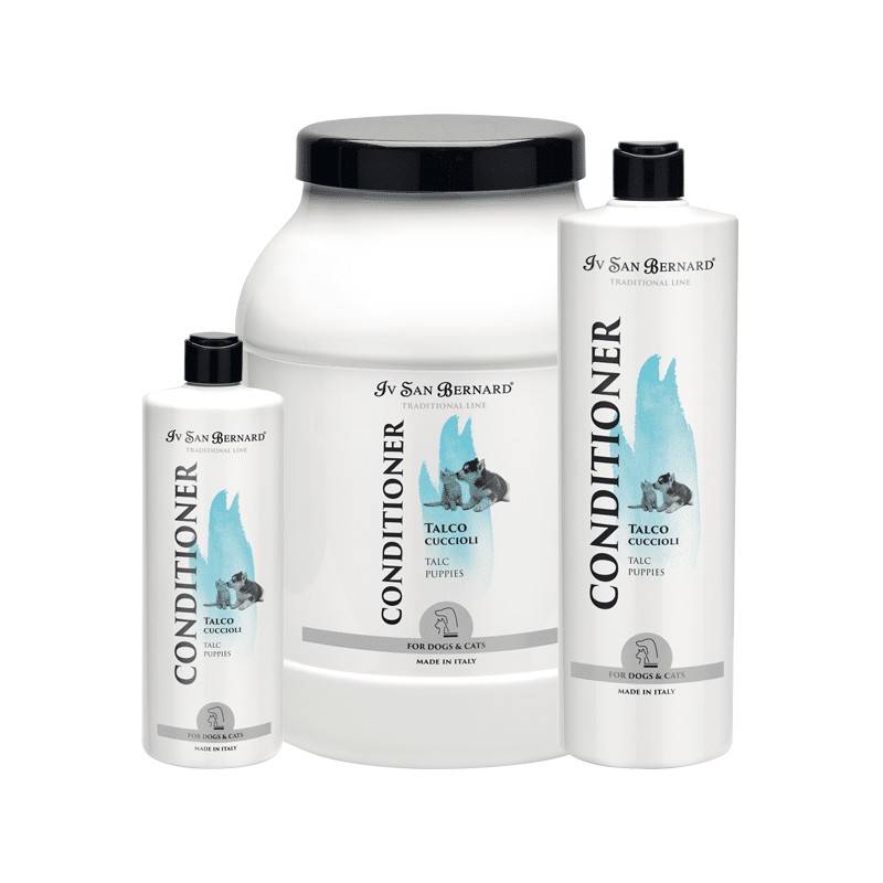 Iv San Bernard Talc Conditioner is a special balm for puppies and kittens, providing softness and nourishment for their developing coats.