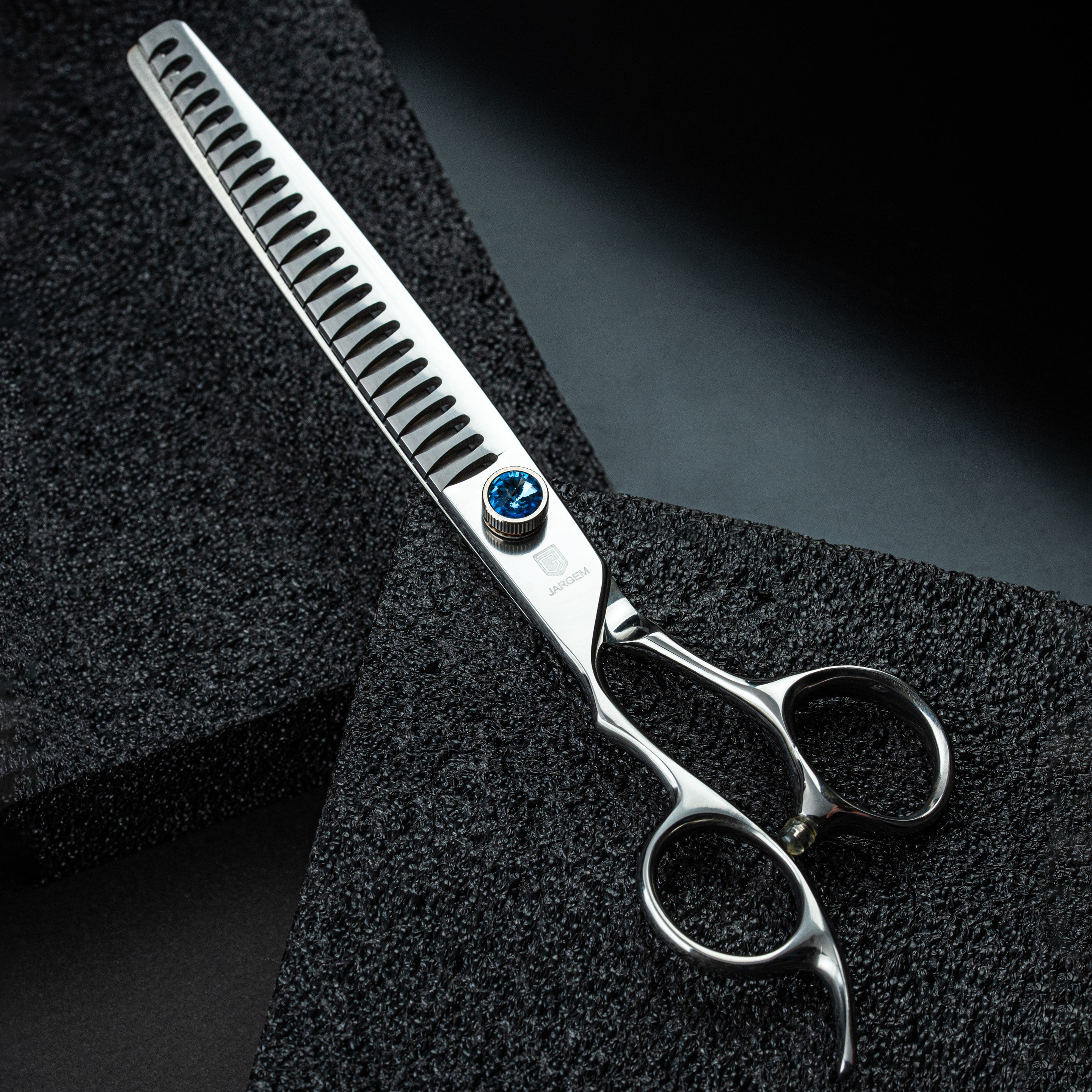 Jargem Lefty Grooming Chunkers 7.5 Inch – Single-Sided 24-Tooth Thinning Shears, Ergonomic Design