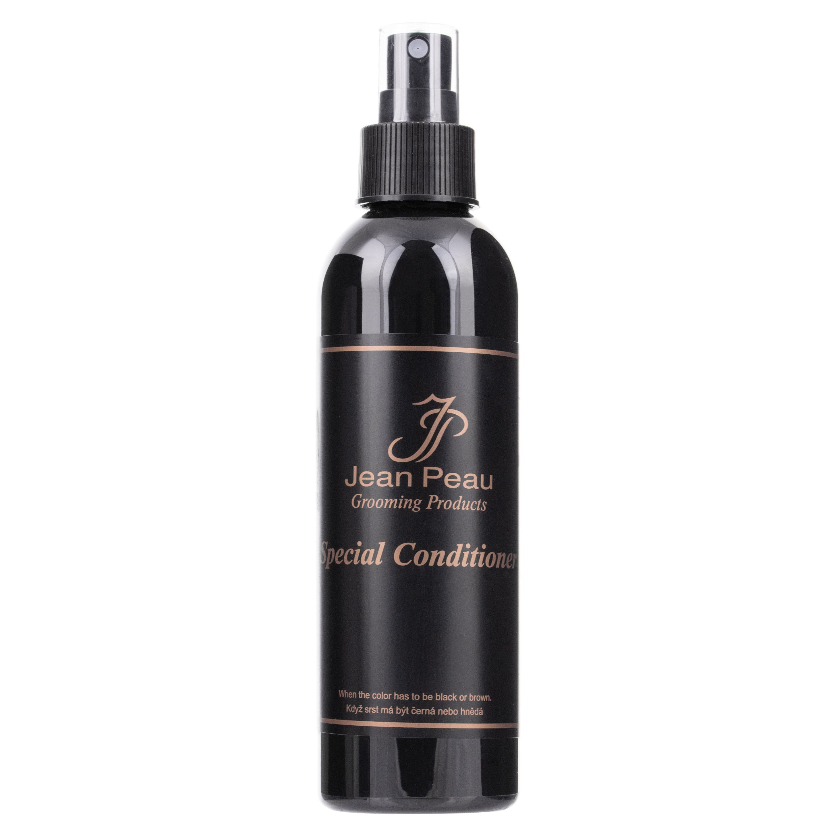 Jean Peau Special Conditioner should only be used on black and dark coats in dogs. To use, apply the diluted (or undiluted) conditioner to damp, shampooed hair and leave it on for a few minutes. Rinse with lukewarm water.