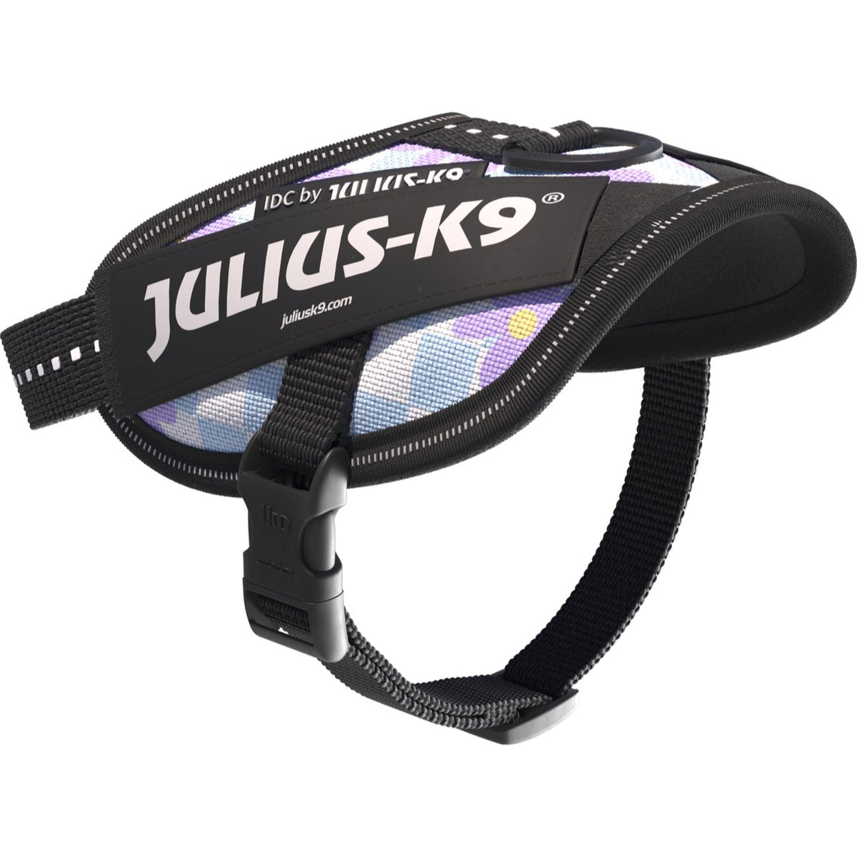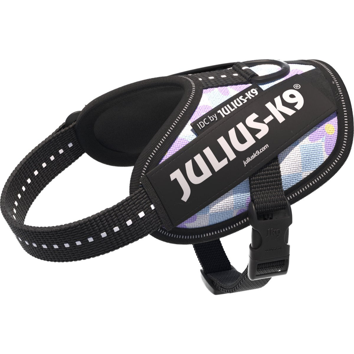 The Julius K9 IDC Powerharness is a dog walking harness, handmade from waterproof and scratch-resistant material. Smooth, stepless size adjustment around the chest and abdomen ensures a precise fit to the dog's build and size. They feature exceptionally stable and unbreakable buckles, which have been confirmed in durability tests. Reflective elements guarantee safety and visibility after dark or in difficult weather conditions. A sturdy ring on the back of the harness allows for attaching a leash, allowing for comfortable walking.