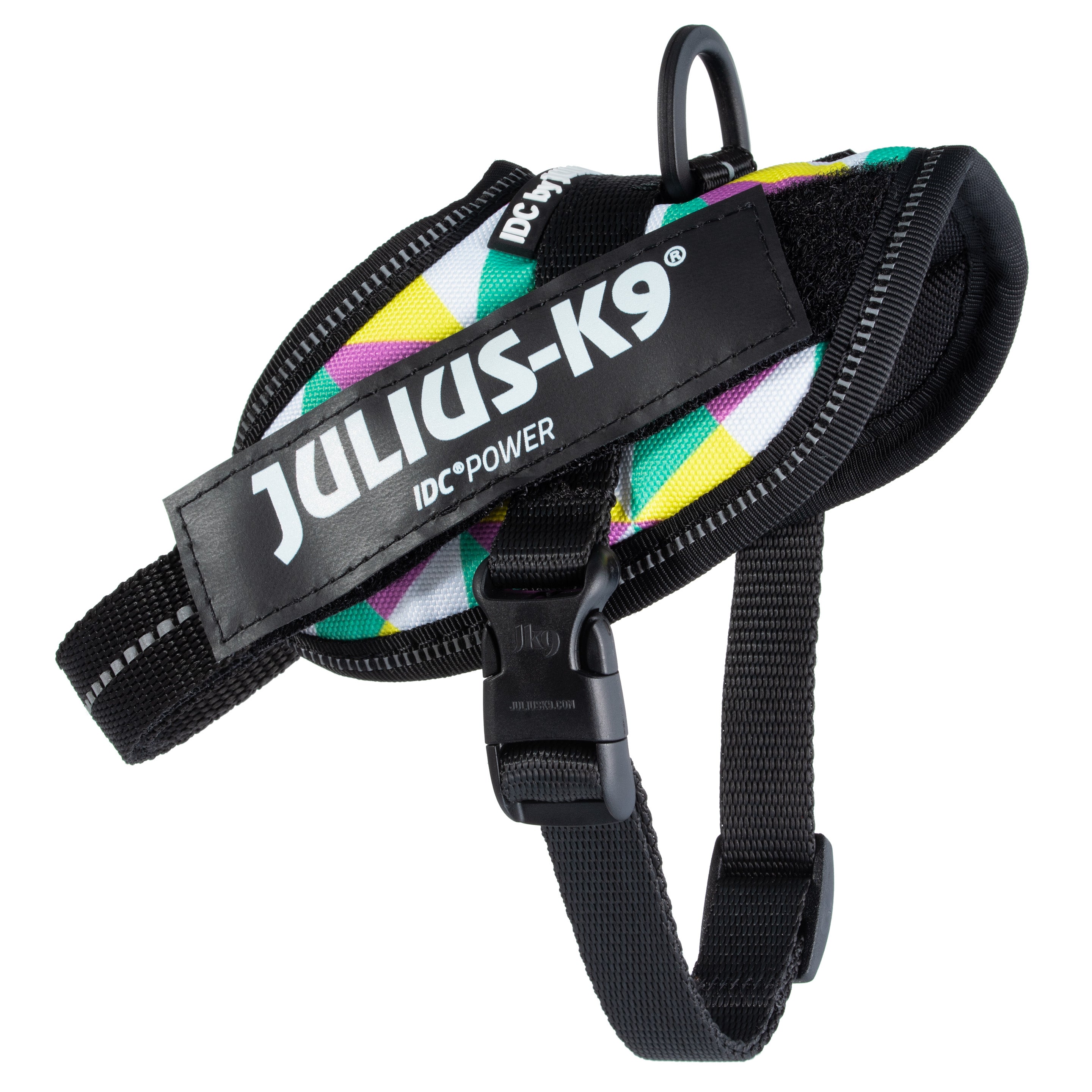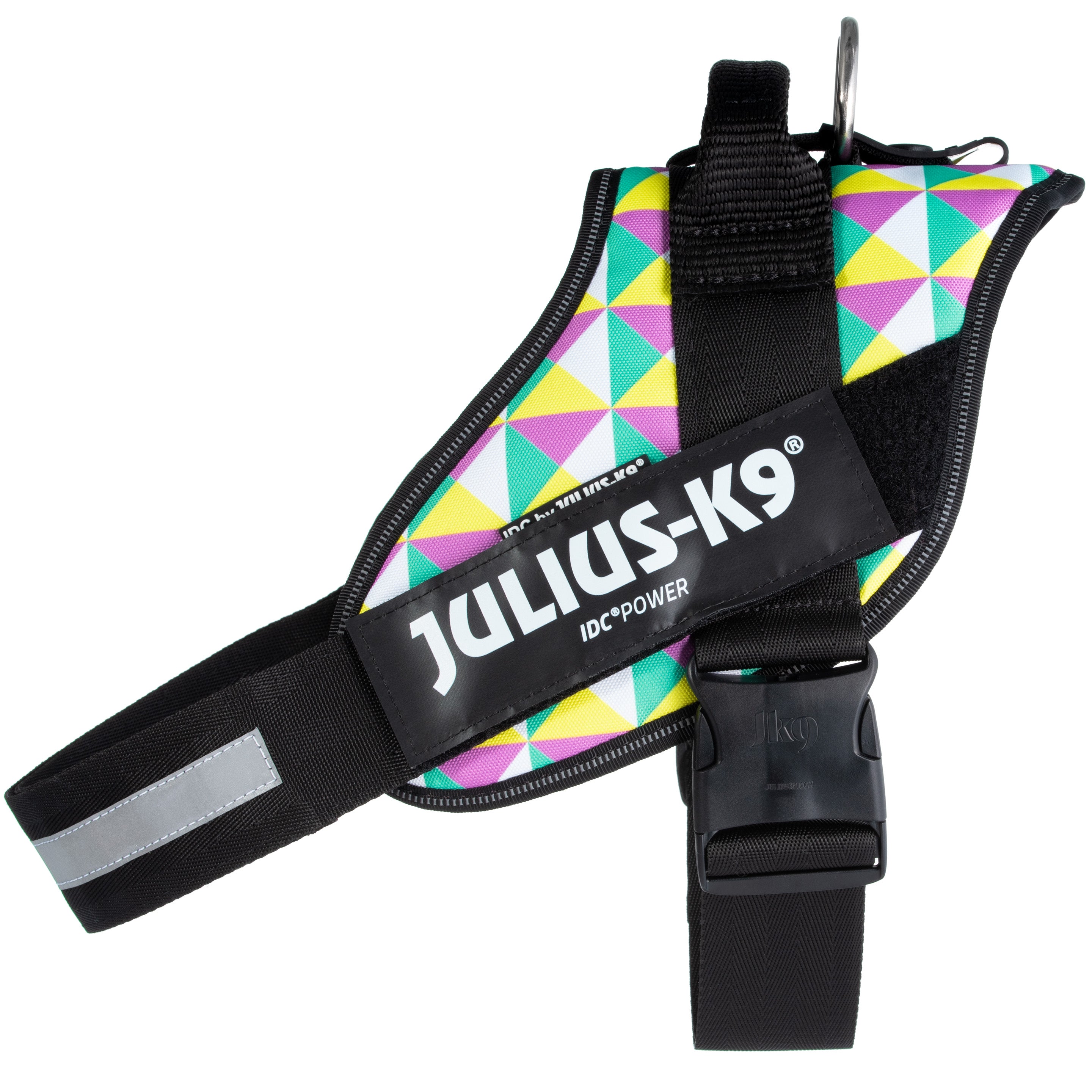 The Julius K9 IDC Powerharness is a dog walking harness, handmade from waterproof and scratch-resistant material. Smooth, stepless size adjustment around the chest and abdomen ensures a precise fit to the dog's build and size. They feature exceptionally stable and unbreakable buckles, which have been confirmed in durability tests. Reflective elements guarantee safety and visibility after dark or in difficult weather conditions. A sturdy ring on the back of the harness allows for attaching a leash, allowing for comfortable walking.