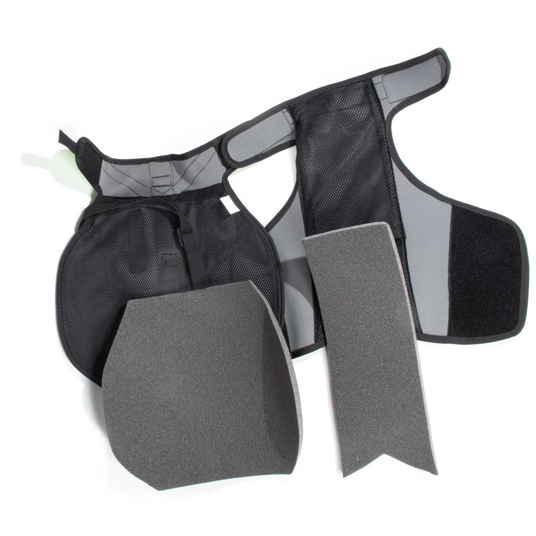 - Easy to put on and take off, it fastens with strong, large Velcro straps at the neck and belly.