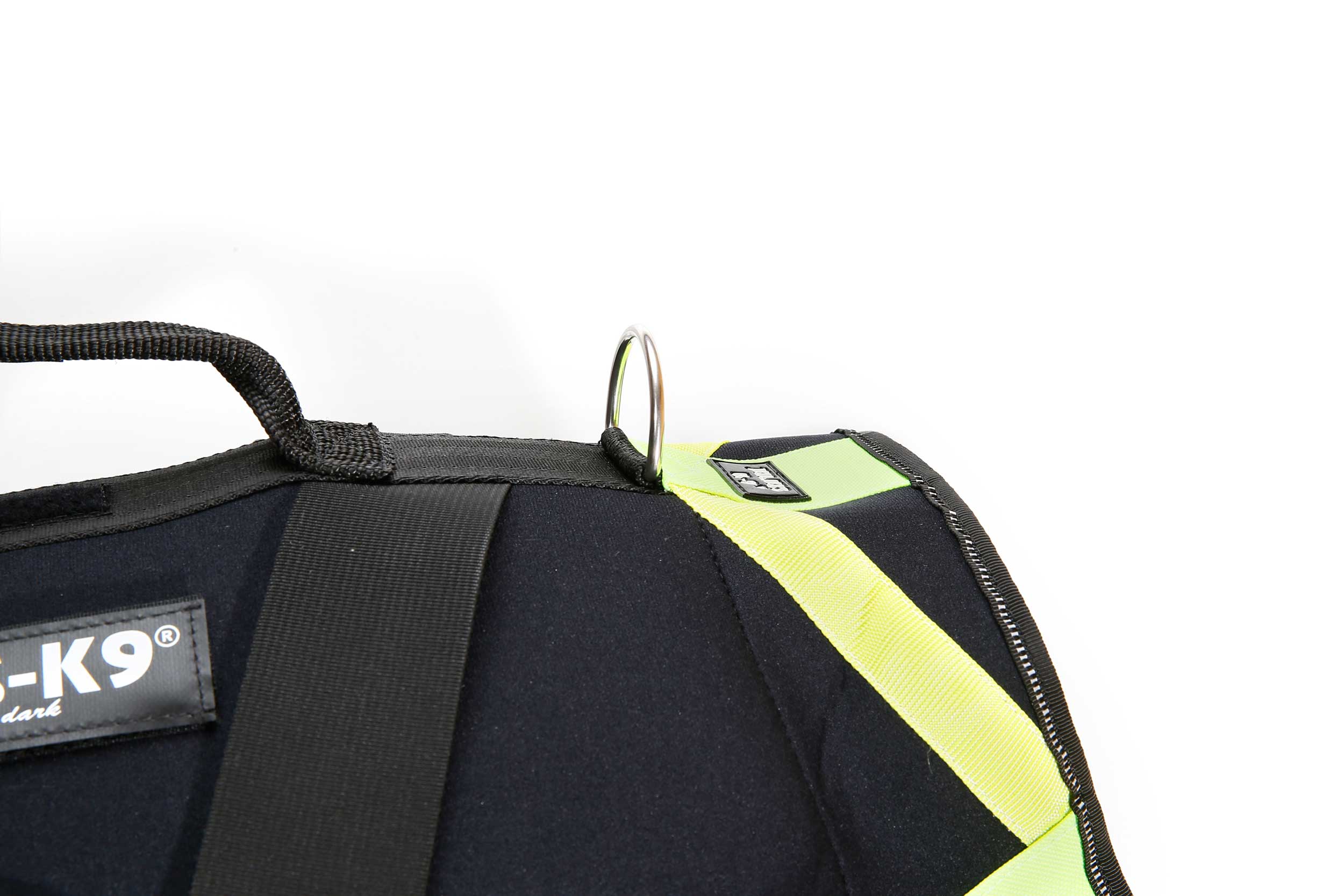 - Two metal D-rings allow you to attach a leash, depending on your needs, to your dog's neck or back.