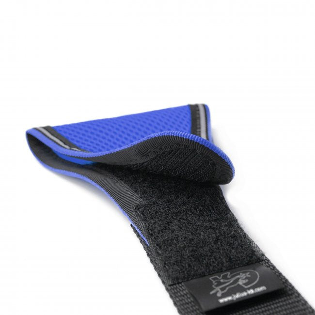 An additional strap for the Julius K9 IDC Powair harness connects the belt across the dog's belly and chest. It allows for better pressure distribution on the dog's chest and shoulders during extended wear. Part of the strap is made of a quick-drying, pleasant-to-touch, soft, and anti-allergic material. The matching harness is made of the same material. The rest of the strap is made of densely woven, strong nylon webbing and durable Velcro. Thanks to the sewn-in 3M reflective tape, it provides even better visibility and safety for the dog in challenging weather conditions.