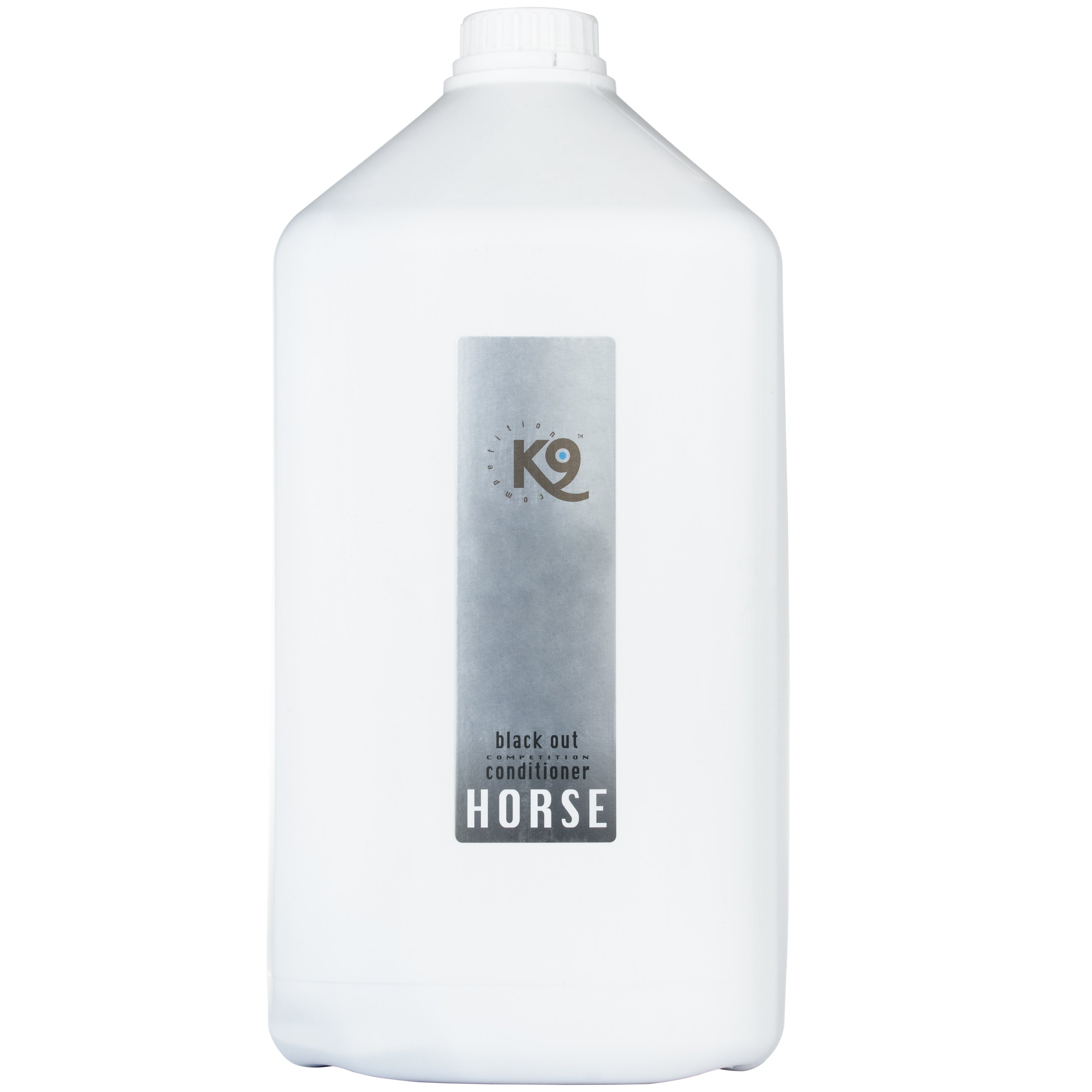 K9 Competition Horse Black Out Conditioner is designed for dark and black horses. It revives, enhances, and refreshes the animal's black and dark coat tones, giving it a natural, lustrous appearance. The conditioner moisturizes and adds volume without causing excessive frizz and has antistatic properties.