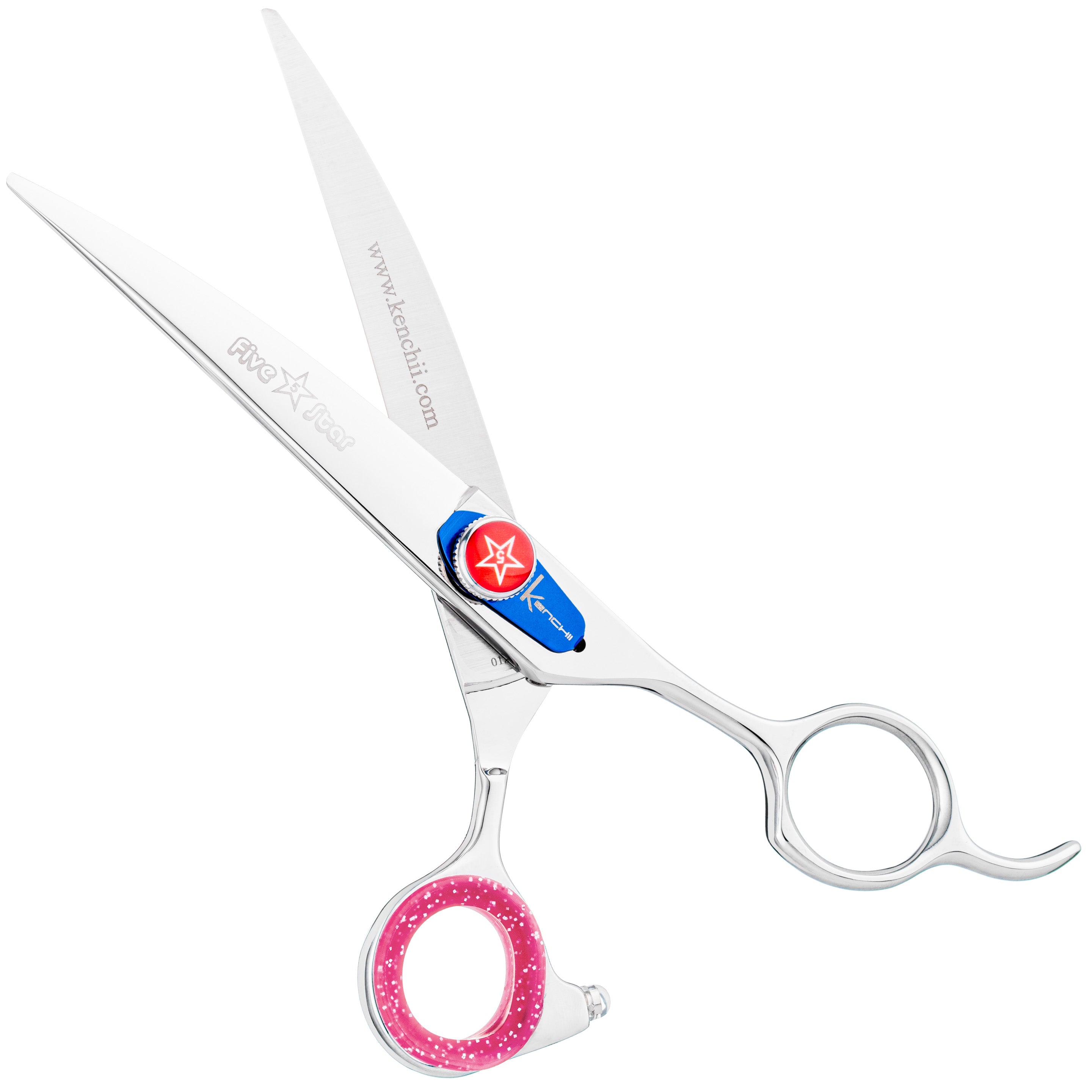 The Kenchii Five Star Offset Curved Scissors with Bevel Blades are the most popular choice among groomers and breeders worldwide. These scissors are perfect for everyday pet care, made from Japanese stainless carbon steel with a Rockwell hardness of 55-57 HR, ensuring they are extremely durable and efficient.