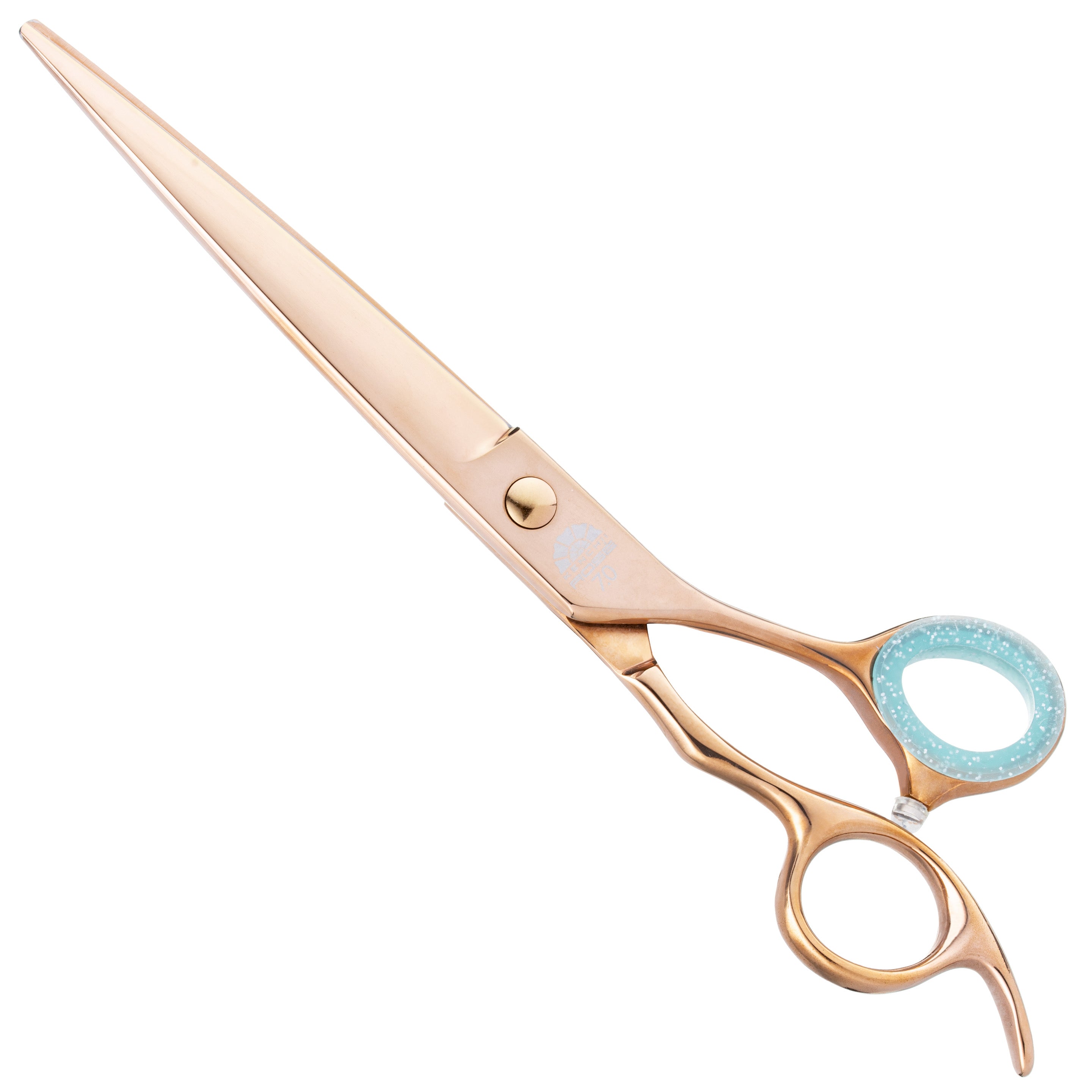 Kenchii Rose Offset Grooming Scissors – 7" Rose Gold Straight Blades with Micro-Sanding Finish