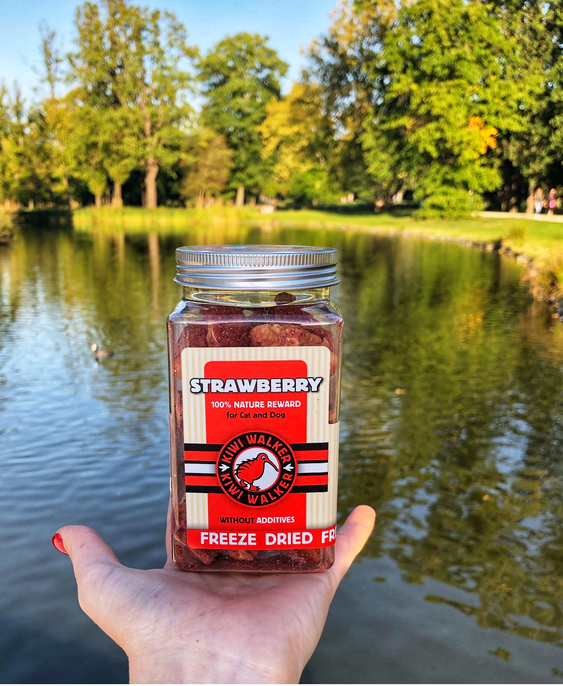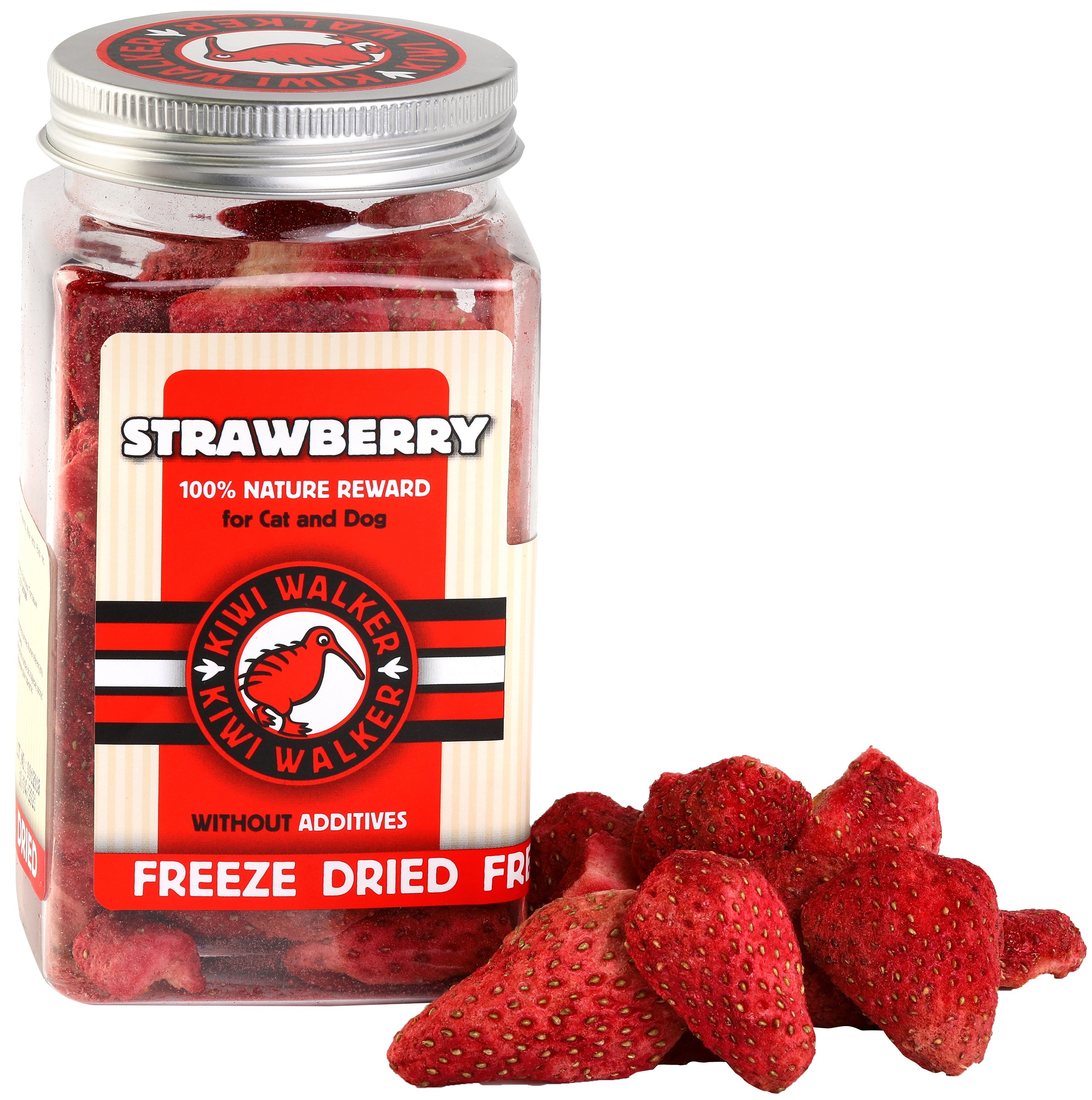 Kiwi Walker Snacks Strawberry are 100% strawberries. Freeze-dried, natural treats for dogs and cats. Looking for delicious, yet healthy treats for your pet? Choose Kiwi Walker Snacks natural treats!