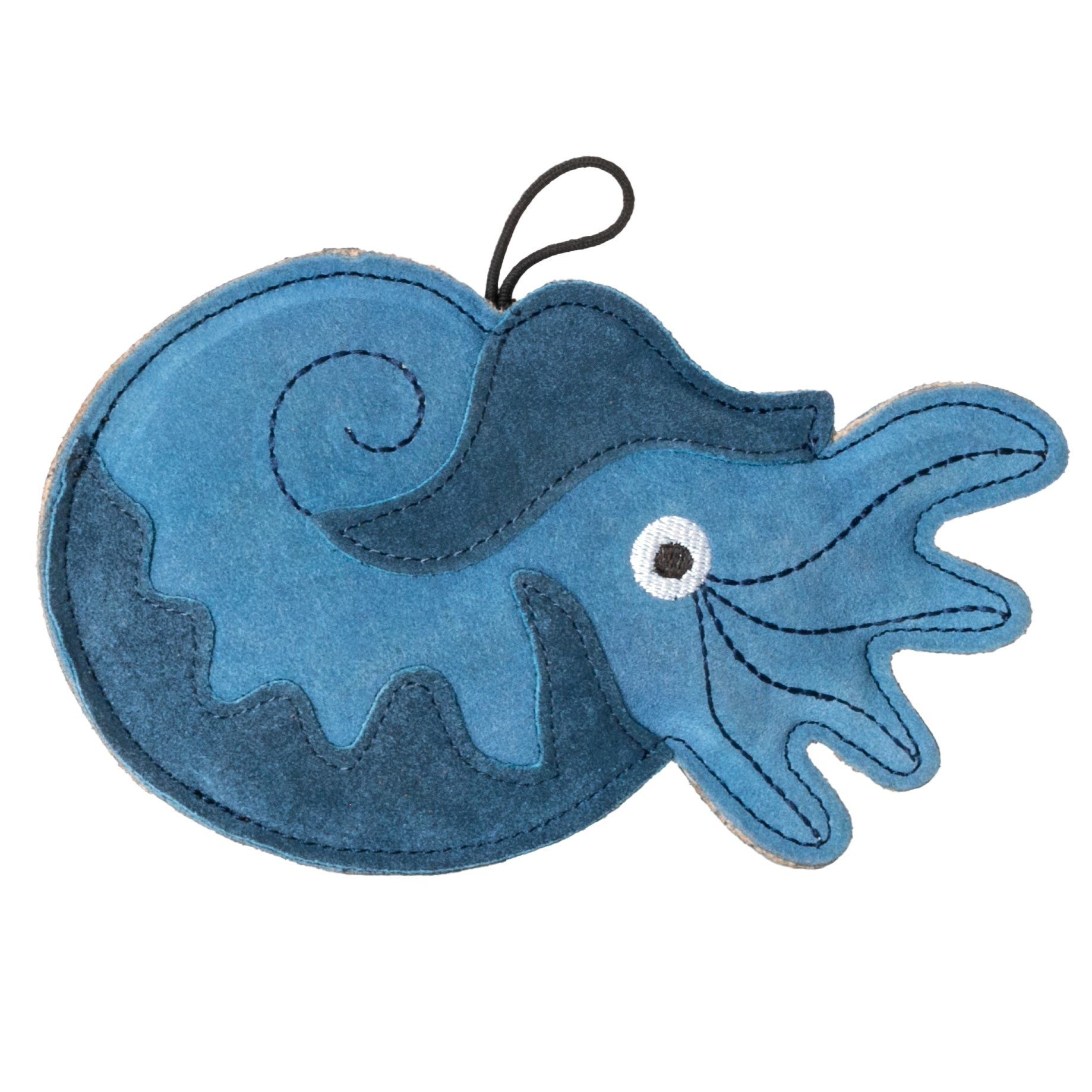 The Kiwi Walker Leather Toy Nautilus is a sturdy dog toy in the shape of a blue nautilus. Made of genuine leather and coconut fiber for greater durability and longer playtime for your pet. The Kiwi Walker Leather Animals toy series features a unique design. The outer layer is made of thick genuine leather with a tempting (for your dog) scent. Coconut fiber, on the other hand, is stiff and hard, making it perfect for a solid filling. Furthermore, it's a natural material obtained from coconut shells. This means the toy will withstand more chewing attempts and won't immediately give in to your dog's teeth.
