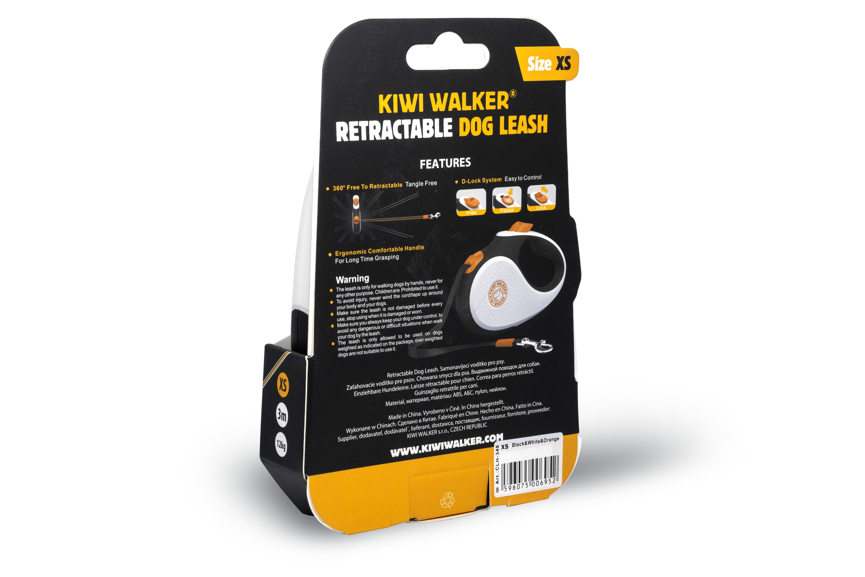 The Kiwi Walker brand prioritizes quality, functionality, and your dog's enjoyment. This retractable leash is especially useful in areas where walking a dog is prohibited or inappropriate. The leash extends to a length of 3m, allowing for greater freedom while maintaining control. Thanks to the braking system, you can react quickly and release the tape if necessary.