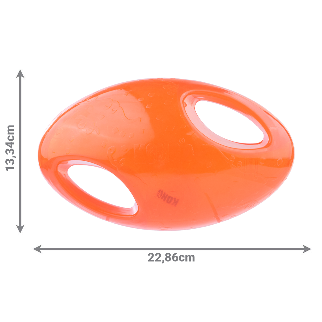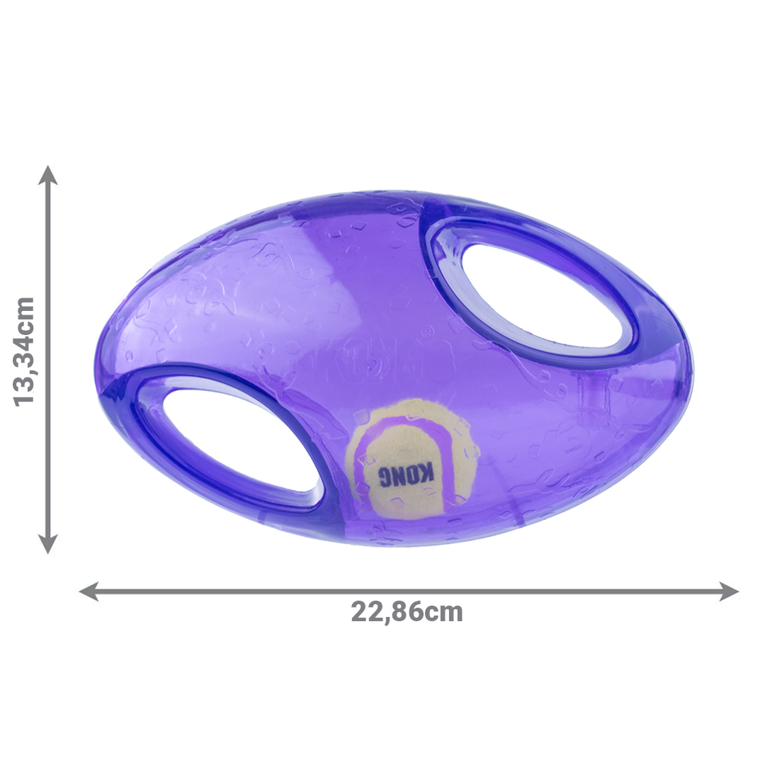 Choose your favorite color. Remember: The KONG Jumbler Football is designed with safety in mind, but no dog toy is indestructible. Watch your dog play with the football. Regularly check the toy for cracks. Immediately discard worn or damaged KONGs.