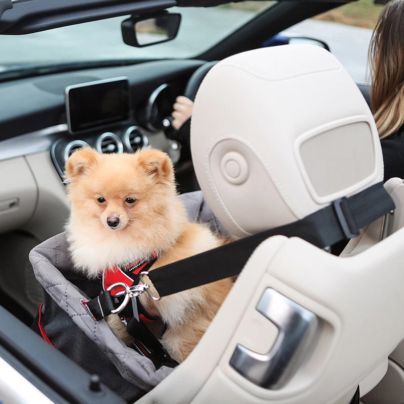This comfortable, lightweight, and foldable carrier is designed to safely transport small pets in the front or back passenger seat (provided the seats are split). Adjustable straps allow for quick and easy installation of the seat in the car. One adjustable strap attaches to the headrest, and the other behind the backrest. You can hang the seat or place it on the seat.
