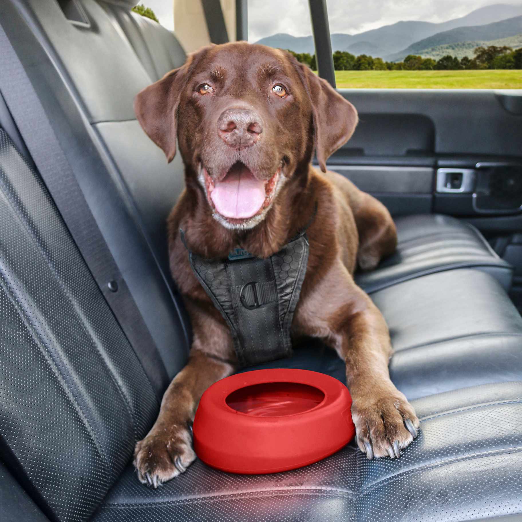 Kurgo Splash Free Wander Water Bowl 710ml – Anti-Spill Design, Durable Red Plastic