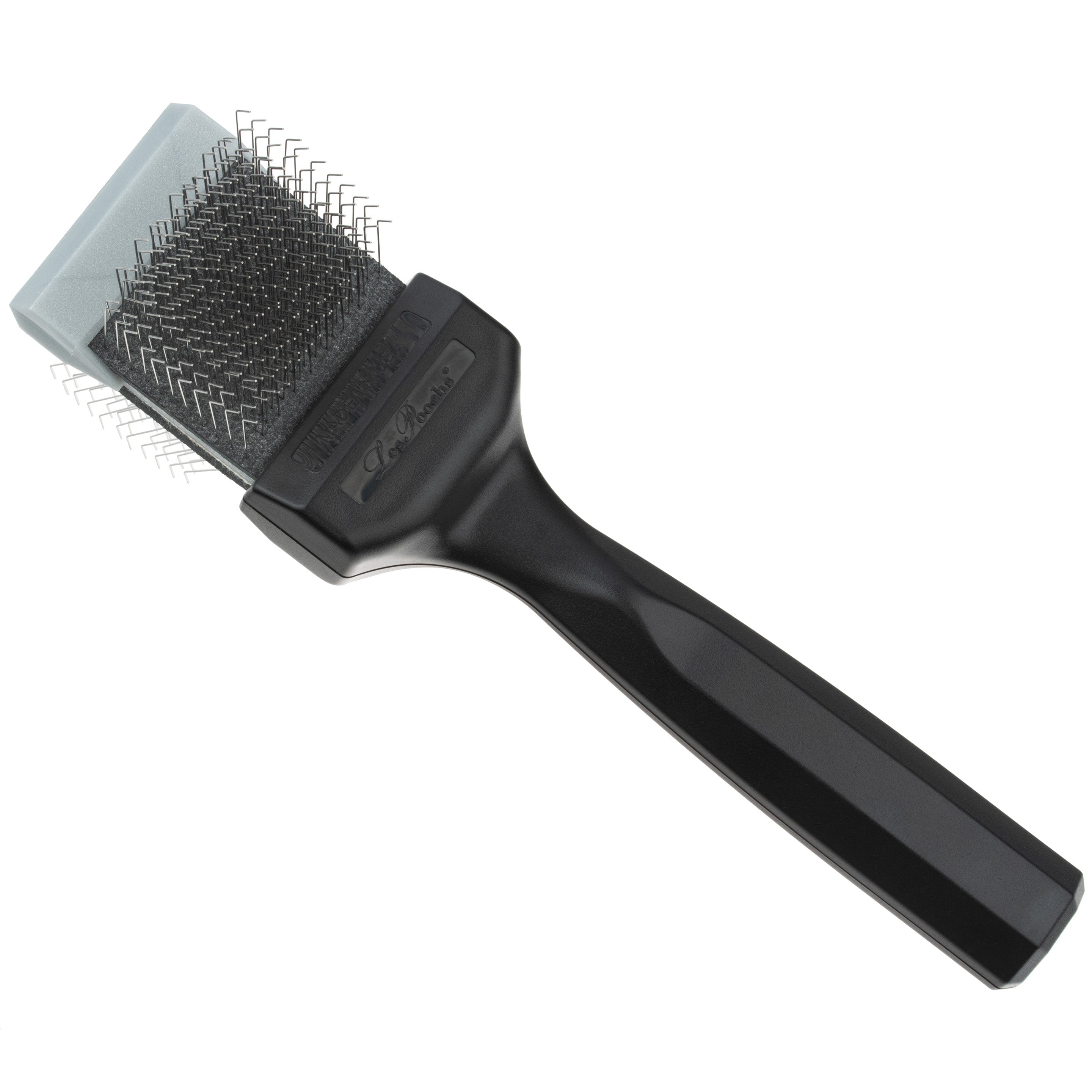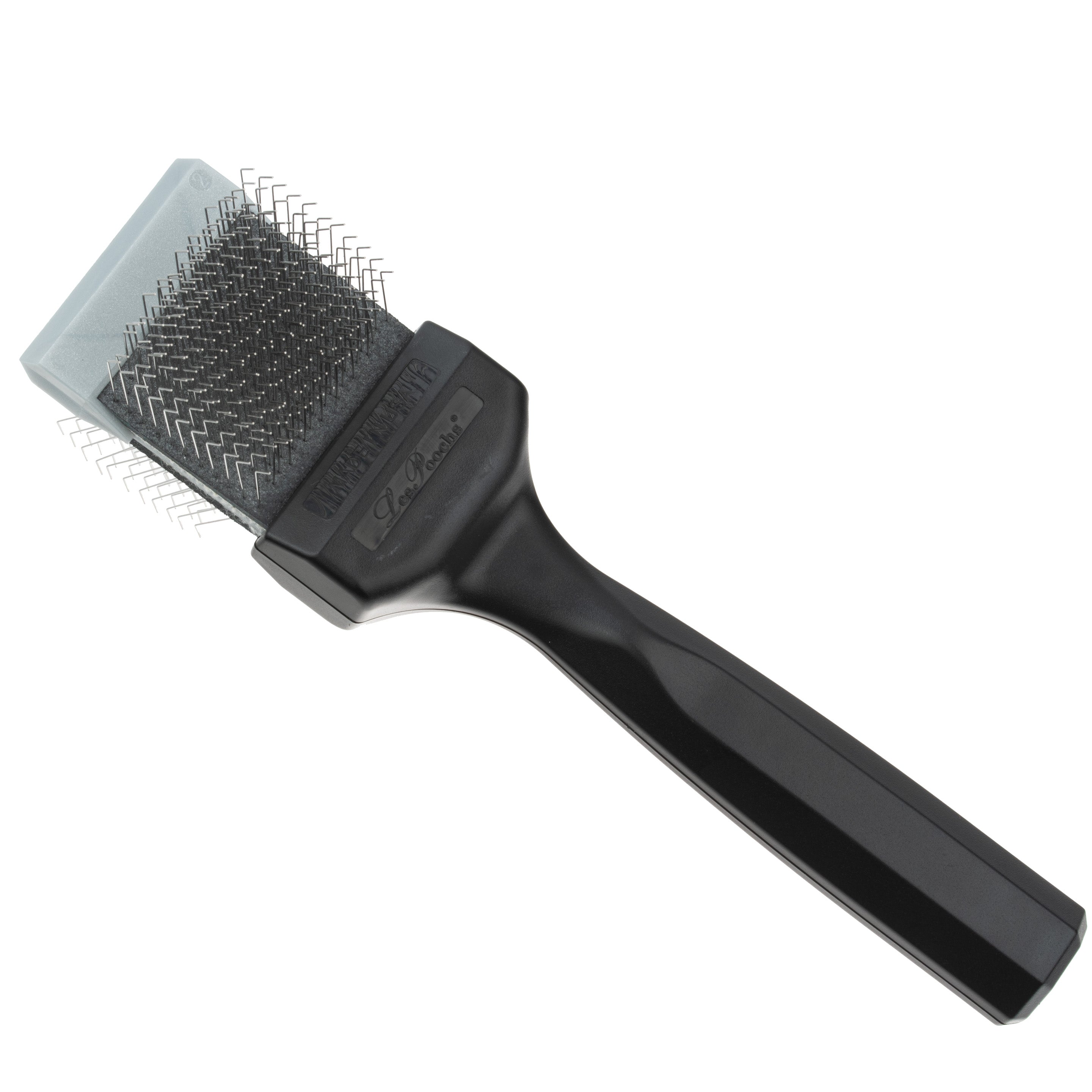 The original Les Poochs brush, made in the USA. This silver model features hard, smooth-tipped needles that have been specially polished to reduce the risk of skin cuts during brushing. Indispensable for finishing a hairstyle, it's perfect for combing undercoats, lifting and fluffing hair. You'll be surprised how much hair it can remove with just a few strokes. This double-sided brush is highly effective yet gentle, leaving the coat shiny and perfectly brushed.