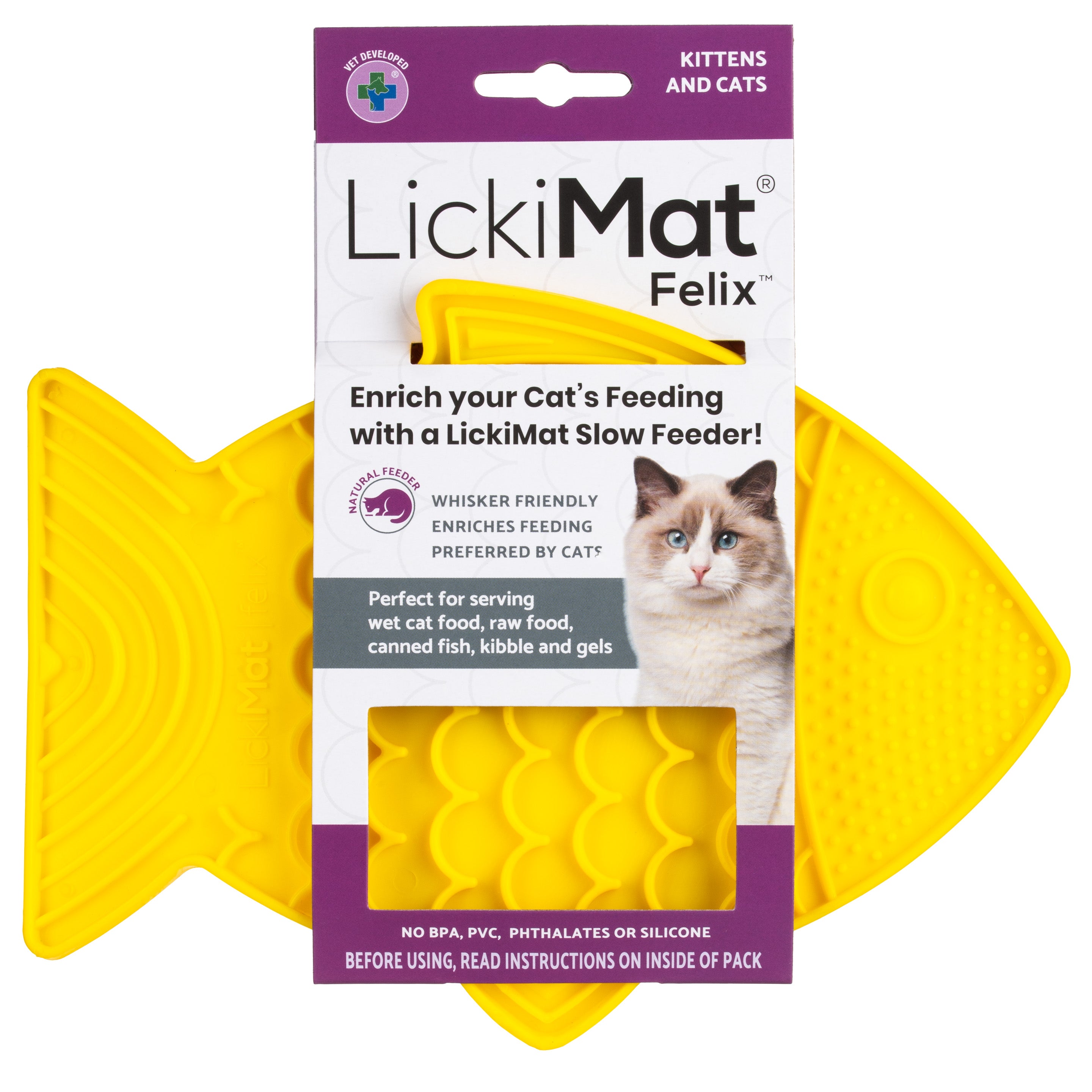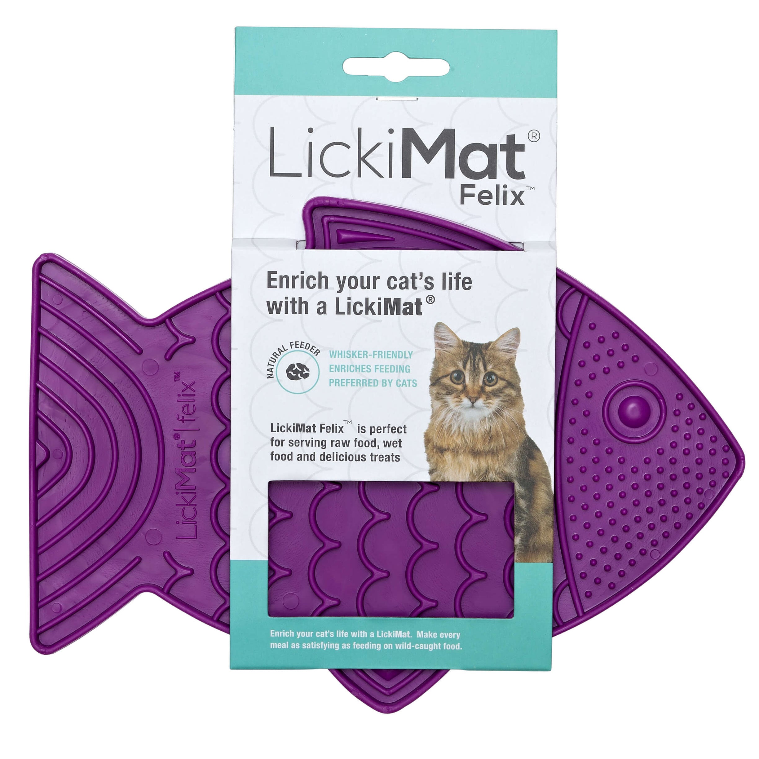 The LickiMat Felix licking mat provides an exciting activity for cats, helping to reduce stress and anxiety while promoting dental hygiene and slowing down eating.