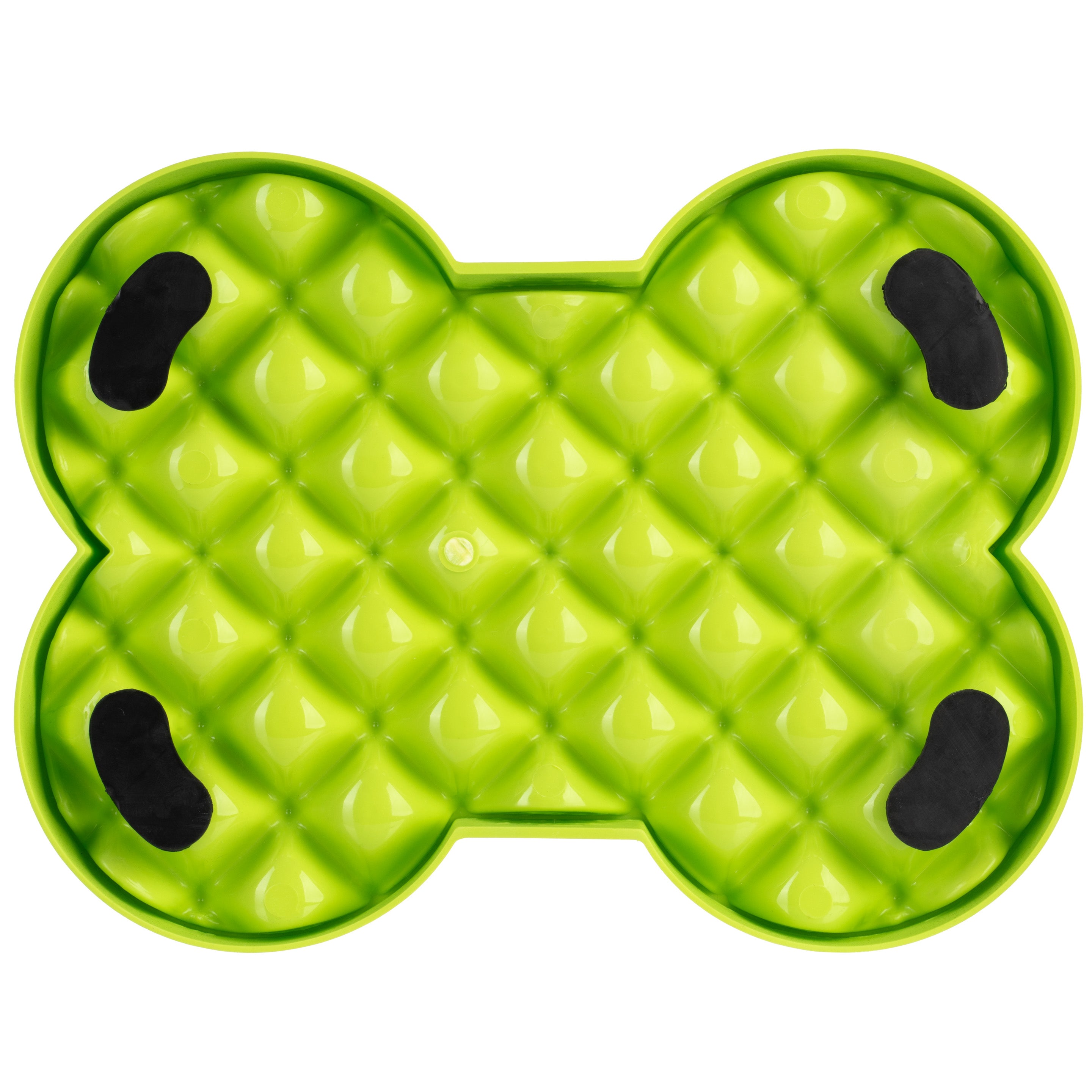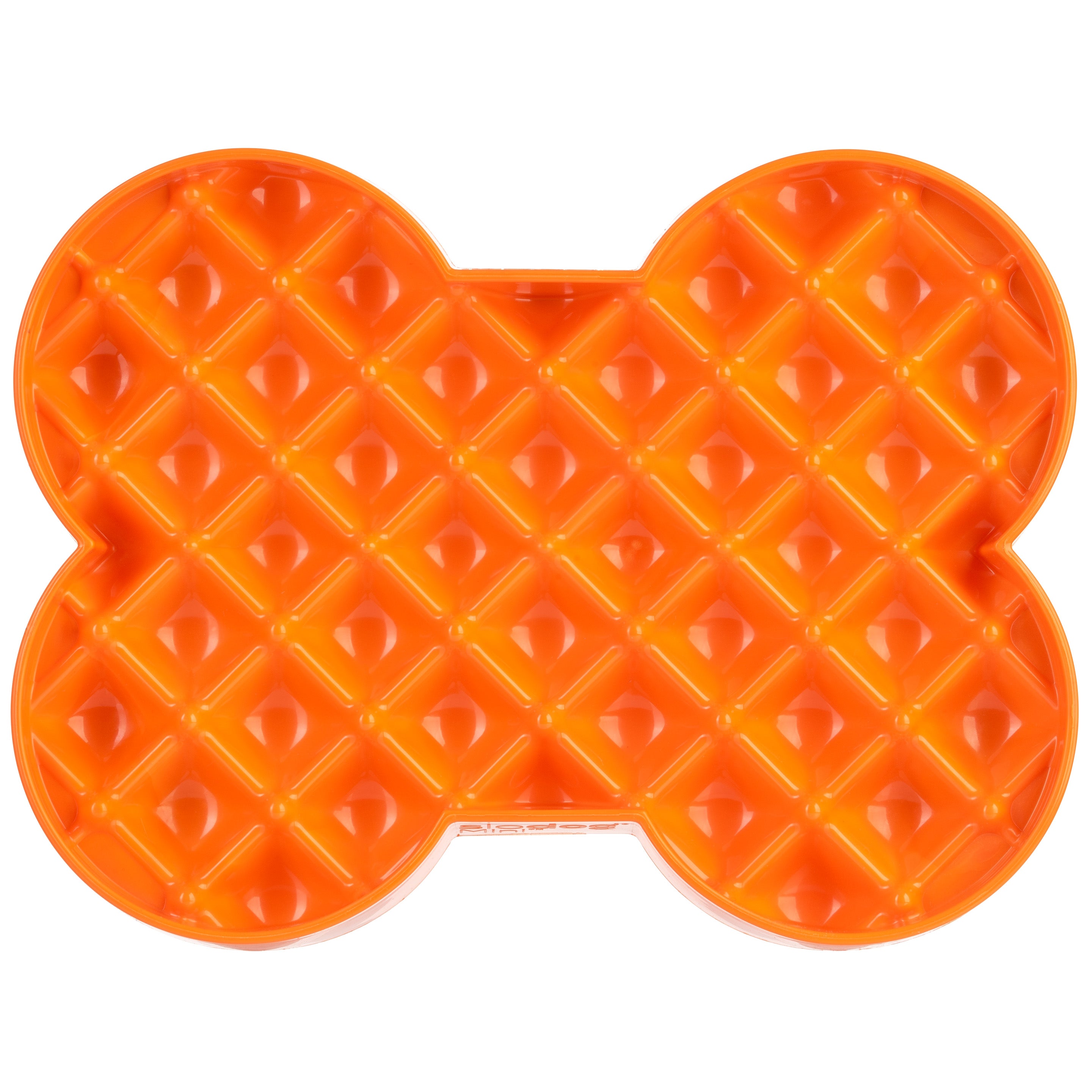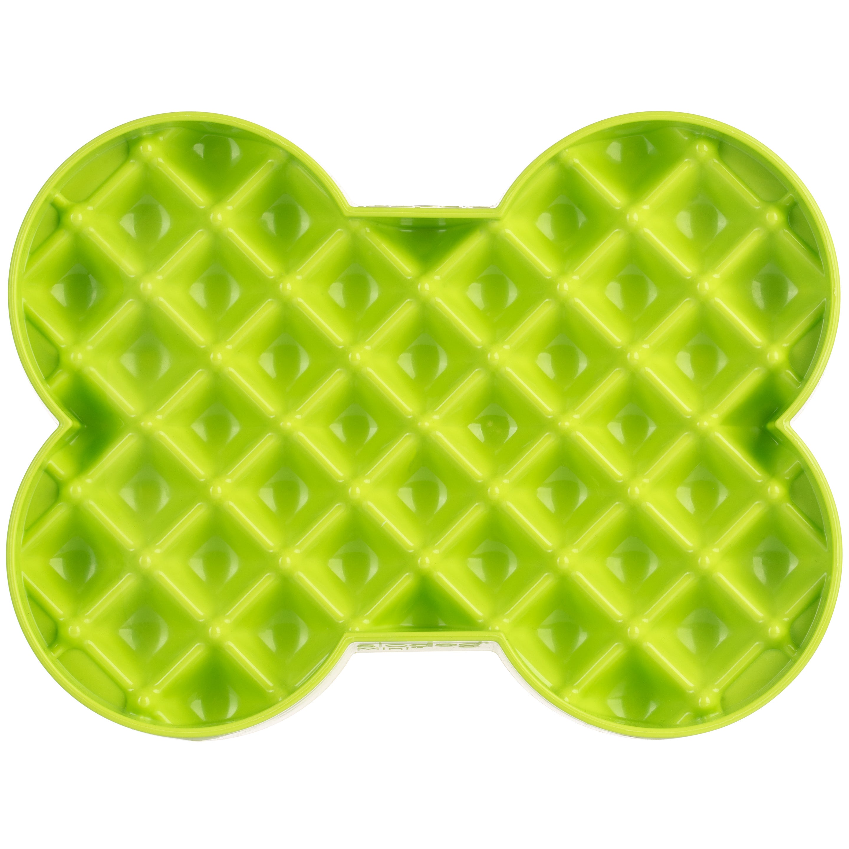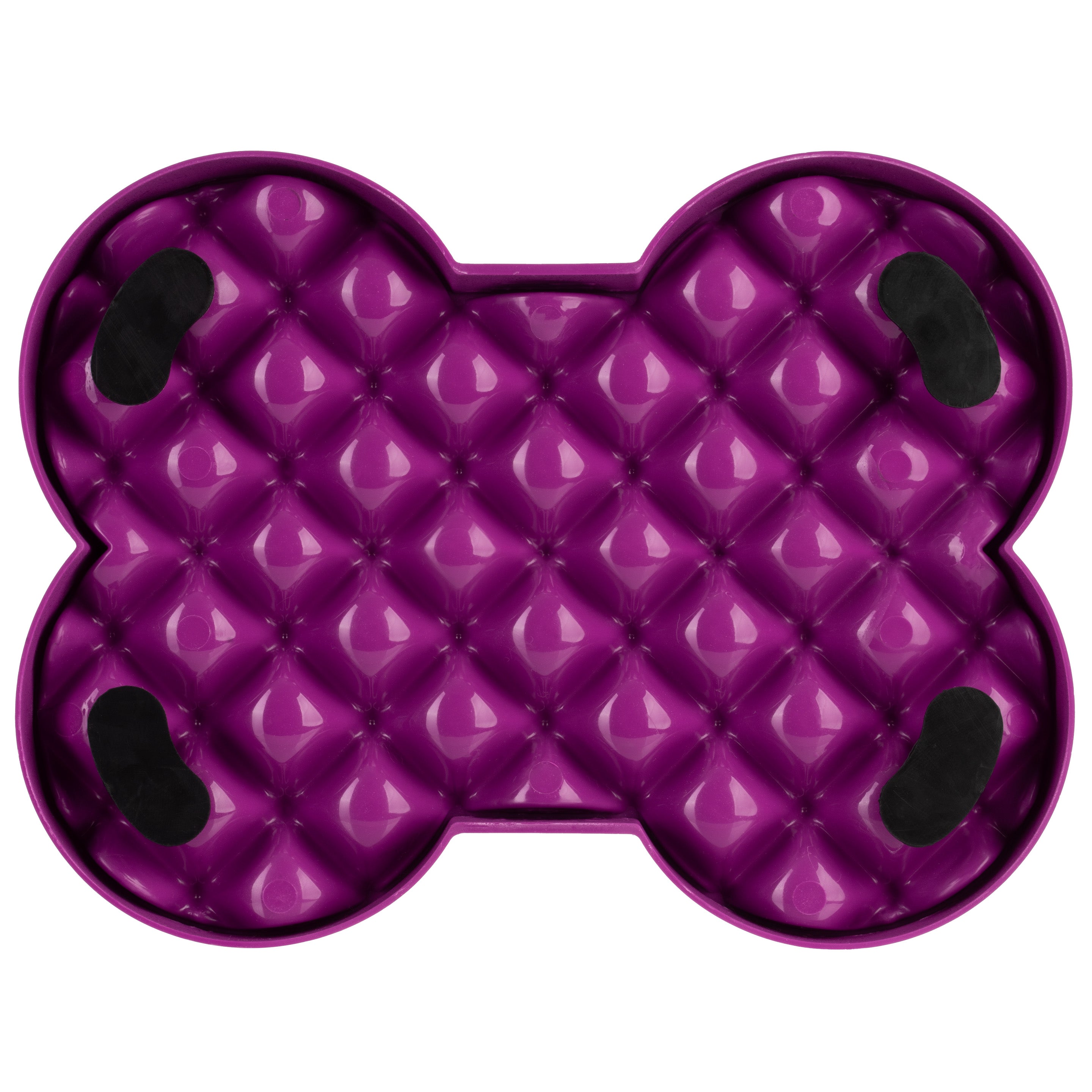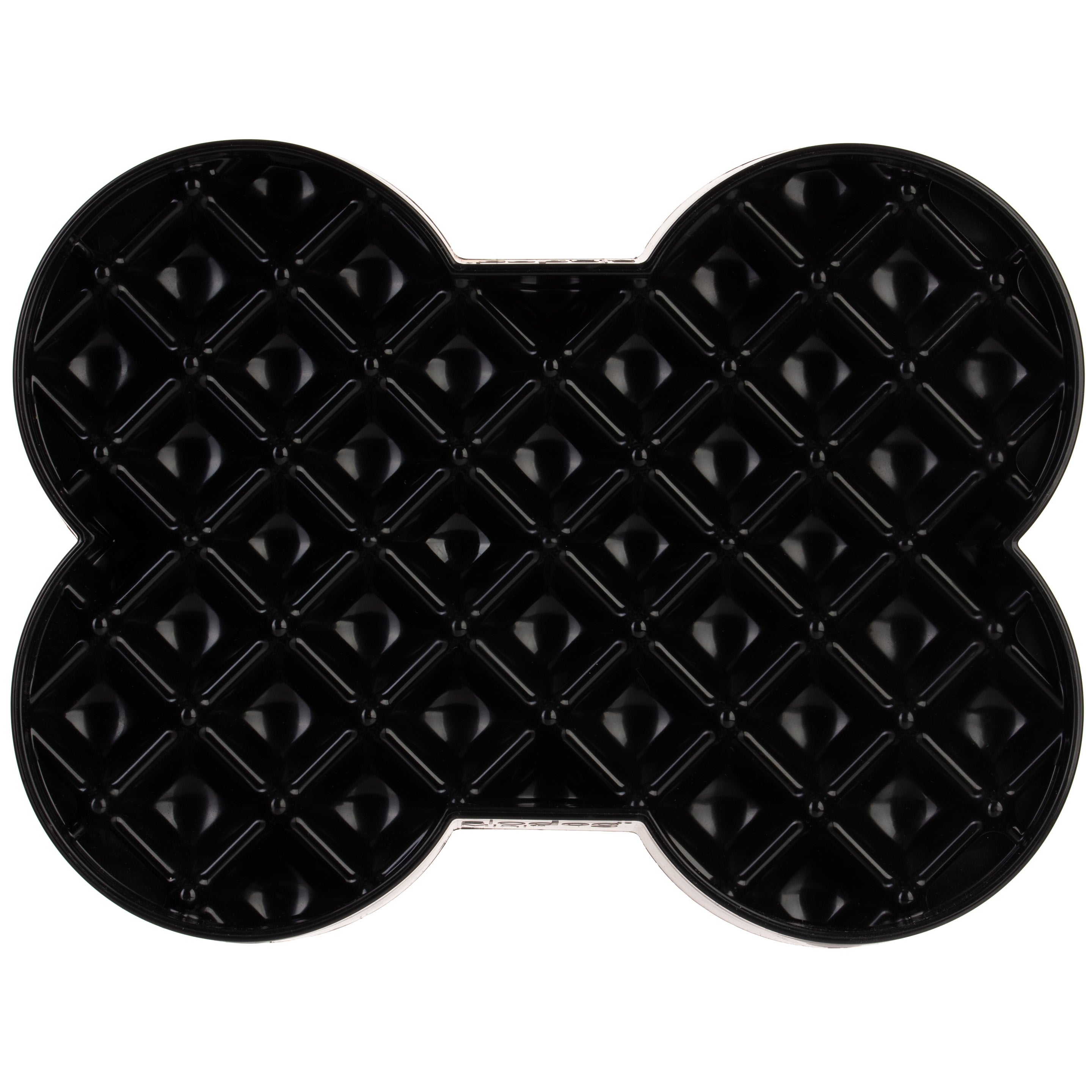Licking food from the bowl's pockets stimulates the salivary glands to produce more saliva, increasing the appetite of picky eaters and helping maintain the pet's teeth, gums, and tongue in good condition. The mat prevents food debris from remaining in the pet's mouth, thus eliminating the problem of bacterial growth and unpleasant odor. It is ideal for serving food in solid, soft, or liquid forms. You can use it to serve dry and wet food, or thick and sticky treats like pates, special dog peanut butter, yogurt, mashed banana, or soggy cookies. Thanks to the bowl's surface, which is adapted for small dogs, all food is within sight and there's no need to chase it, which helps avoid frustration. Non-slip feet ensure stability and prevent the item from sliding on the floor.