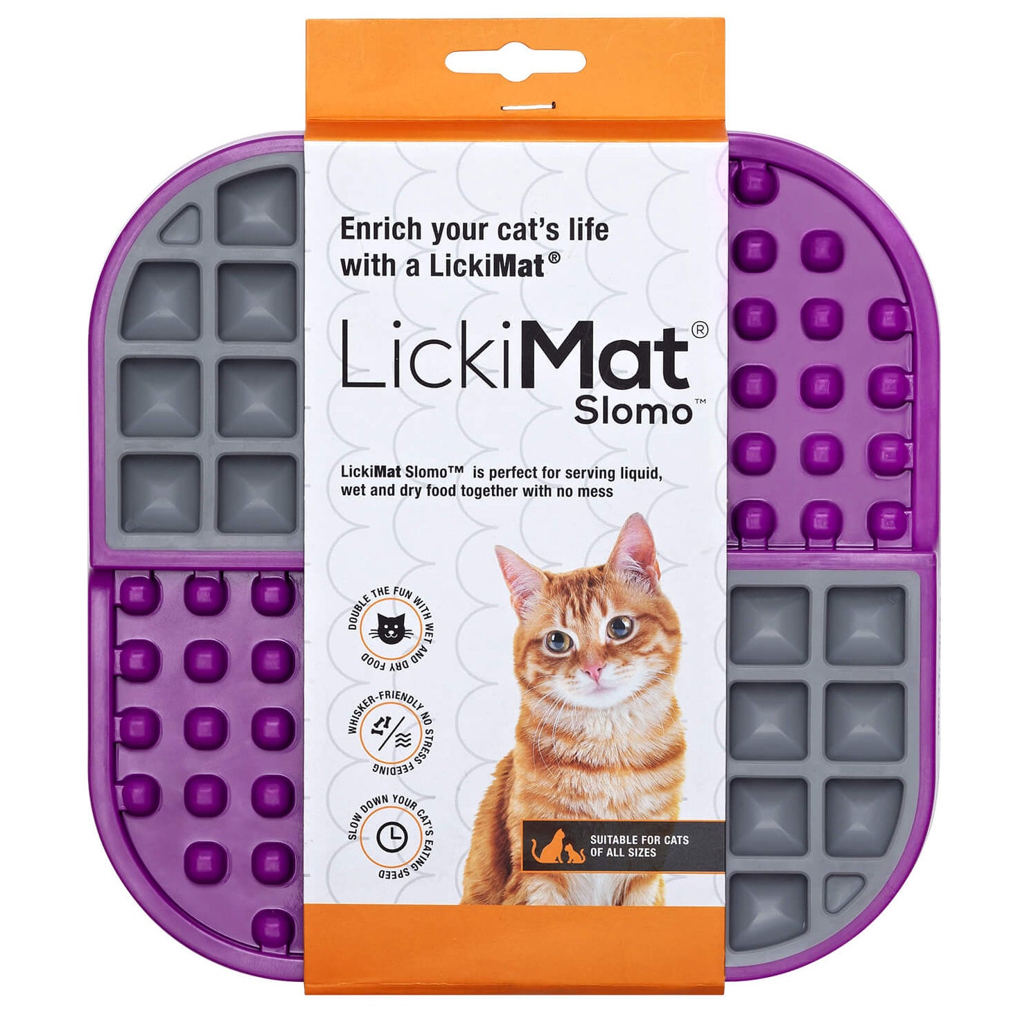 The LickiMat Slomo Cat licking mat provides your pet with an exciting activity that helps combat stress and anxiety, recommended by veterinarians and behaviorists worldwide.