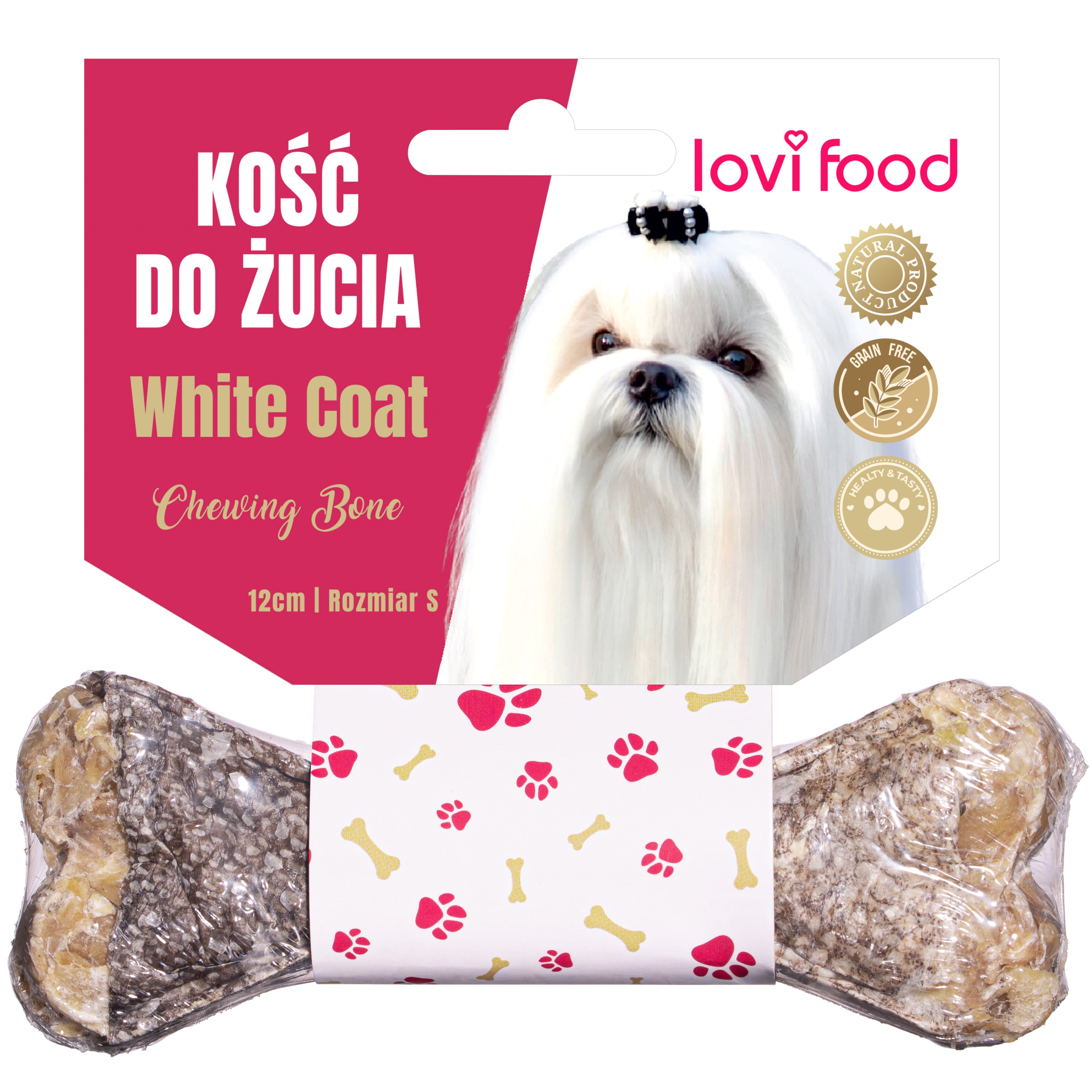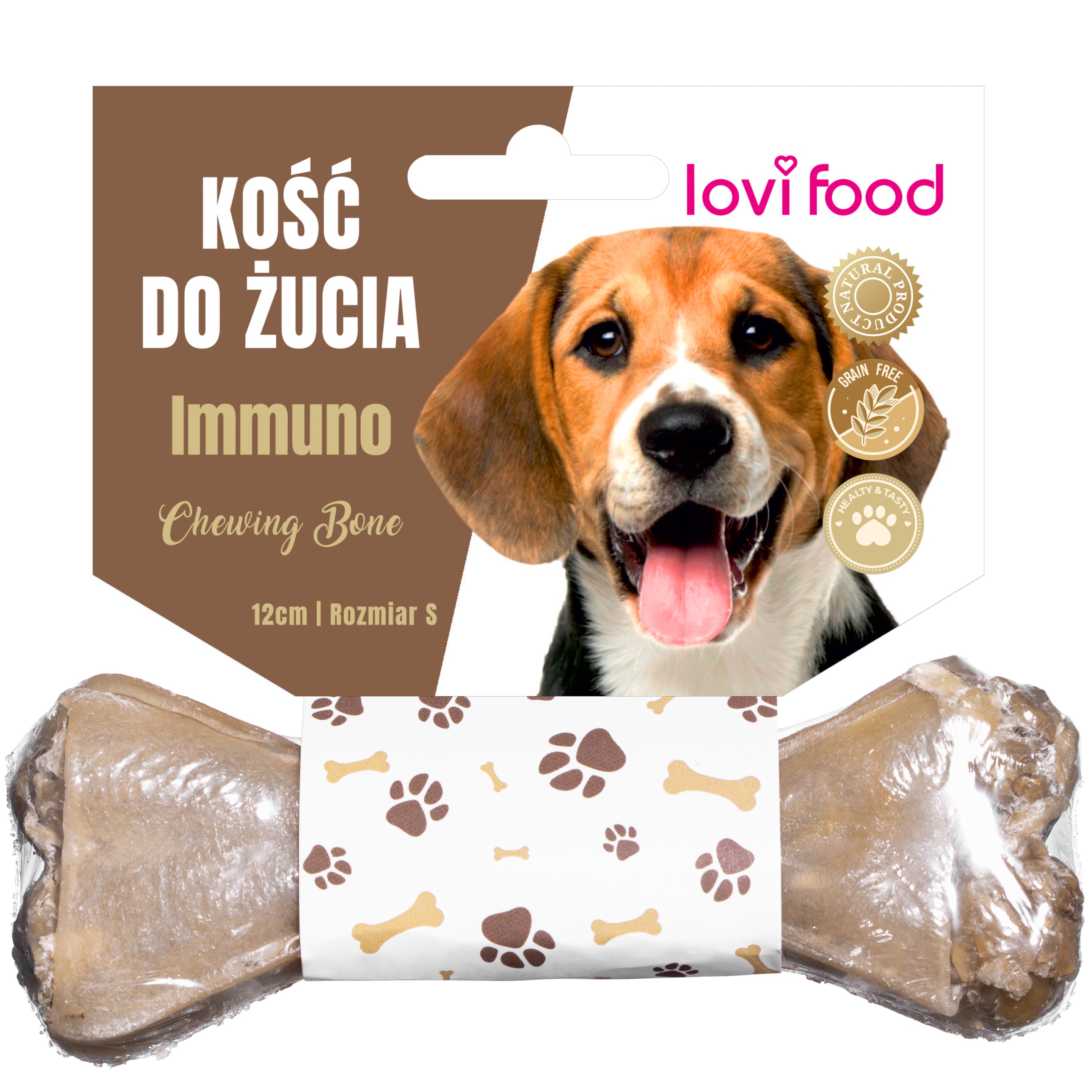 Giving your dog a Lovi Food bone satisfies basic needs such as chewing, licking, sniffing, and biting. The bone's structure is friendly to your dog's teeth and gums, cleansing and massaging the inside of the mouth. As it chews, the bone gradually dissolves, releasing rich flavor and aroma without crumbling or leaving sharp fragments. Chewing calms and relaxes the dog, providing engaging activity for extended periods. A tasty snack helps build a bond between owner and dog, based on trust and love.