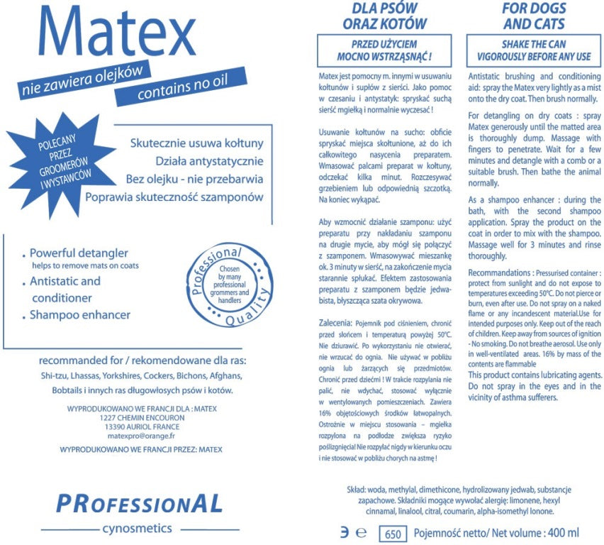 Matex Antistatic Conditioner 400ml – Volumizing Formula for Matted and Tangled Hair