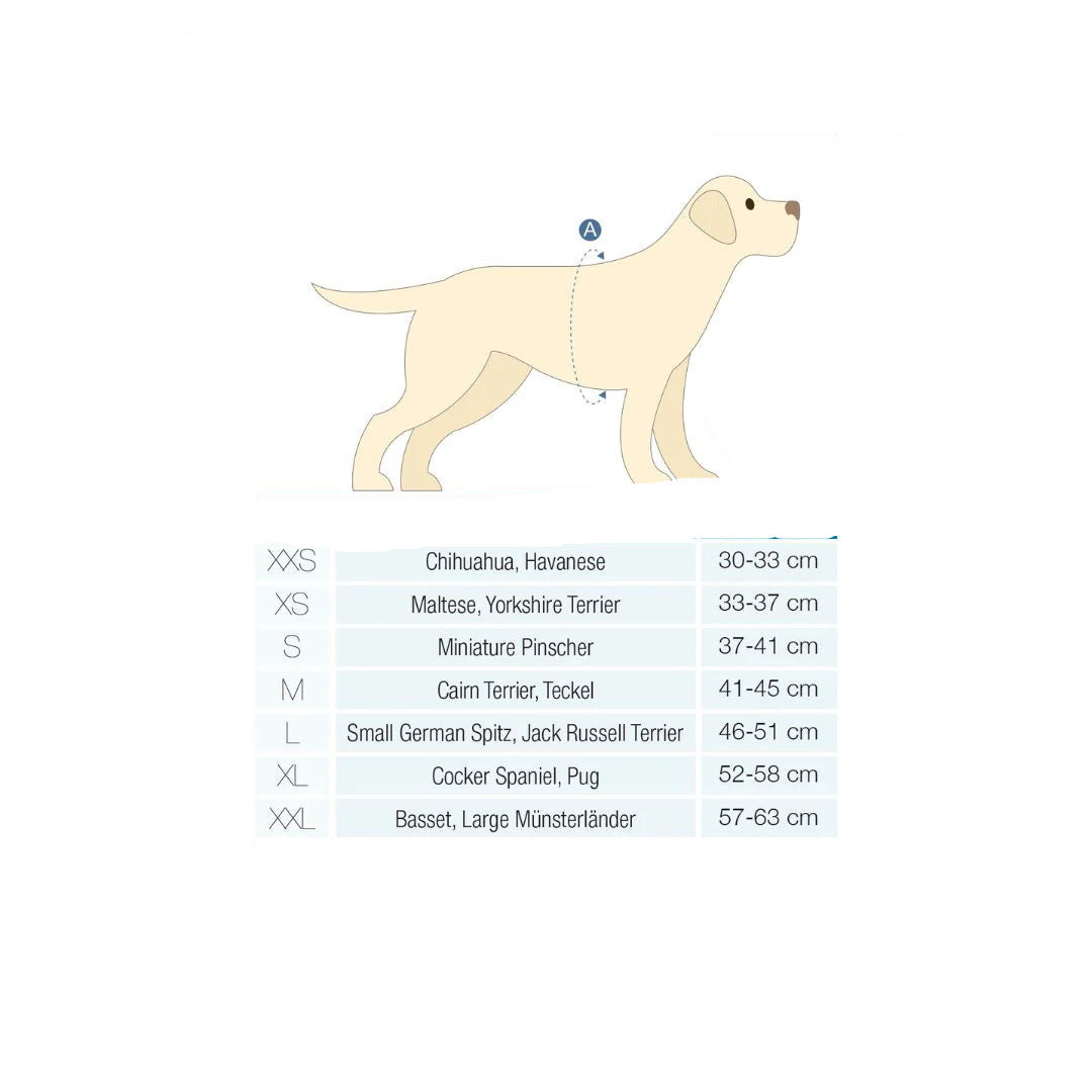 The harness is made of pleasant-to-touch, antibacterial neoprene and covered with mesh. Neoprene is an ultra-light, delicate, soft, and yet flexible material that provides the dog with a high level of comfort without compressing or rubbing the fur. The mesh ensures adequate body ventilation. Reflective piping and stitching on the straps ensure your pet is visible at night. They're easy to put on and take off and are machine washable on a gentle cycle at 30°C.