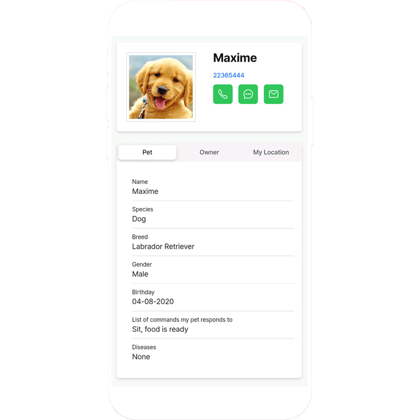 - If your pet runs away or gets lost, the person who finds it scans the code on the tag and receives information about the animal.