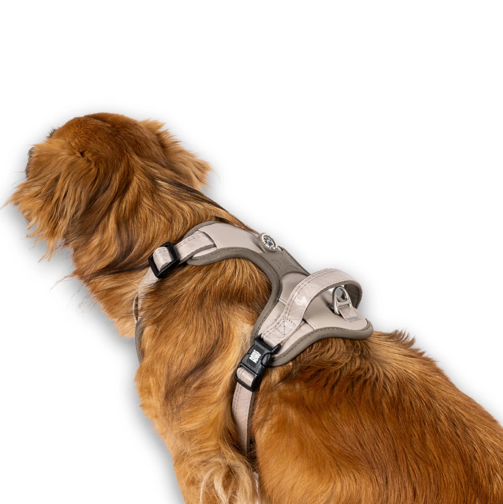 The Max&Molly Sport Harness Smart ID Matrix 2.0 Sand is an adjustable dog harness designed for comfort and safety, perfect for active dogs and their owners.