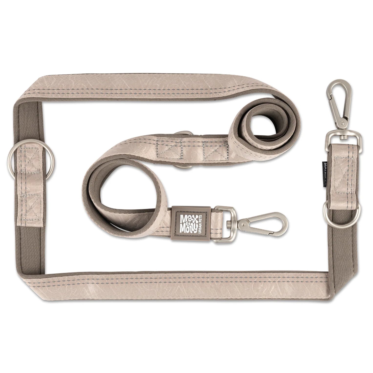 A beautiful, adjustable dog leash in an elegant, pastel color, the Max&Molly Multi Function Matrix 2.0 Sand is designed and crafted with attention to every detail to ensure the comfort and safety of both the dog and its owner. With the ability to adjust its length and use depending on your needs, it's perfect for everyday walks in urban environments and longer trips.
