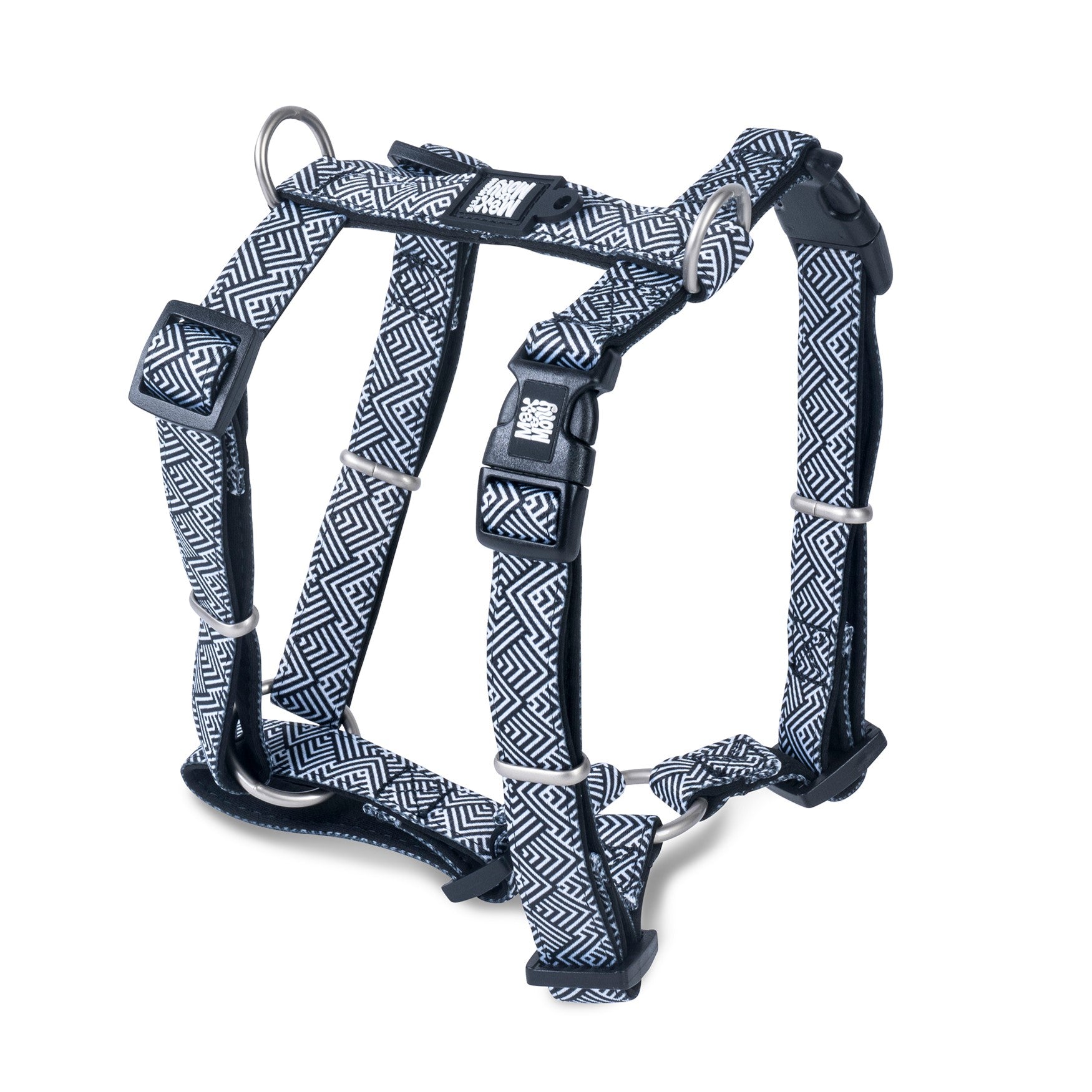 The Max&Molly H-Harness Mykonos Black dog harness offers a perfect fit for all dog sizes and activities, featuring vibrant designs and durable materials.