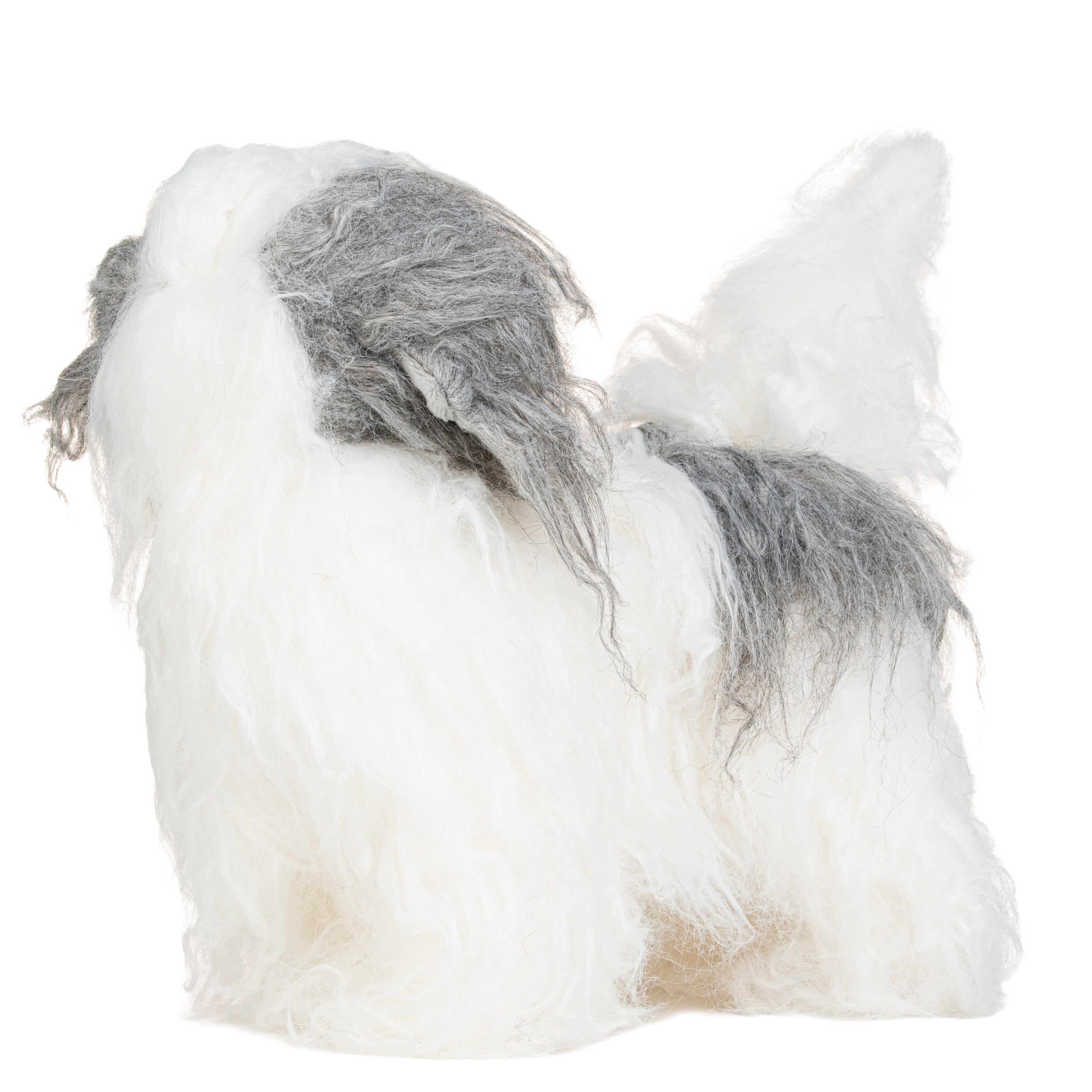 Mr. Jiang Shih Tzu Full Body Hair Grey & White Coat, in a gray and white color, imitates the coat of a Shih Tzu. A high-quality accessory designed for use with the Mr. Jiang Small Model Dog. It's the perfect tool for any groomer, whether you're just starting out in dog grooming and cutting or a seasoned professional. This coat is designed to help you perfect your scissor cutting techniques, shape your hair, and creatively groom small breed dogs. It's indispensable for all types of training, classes, shows, and competitions.