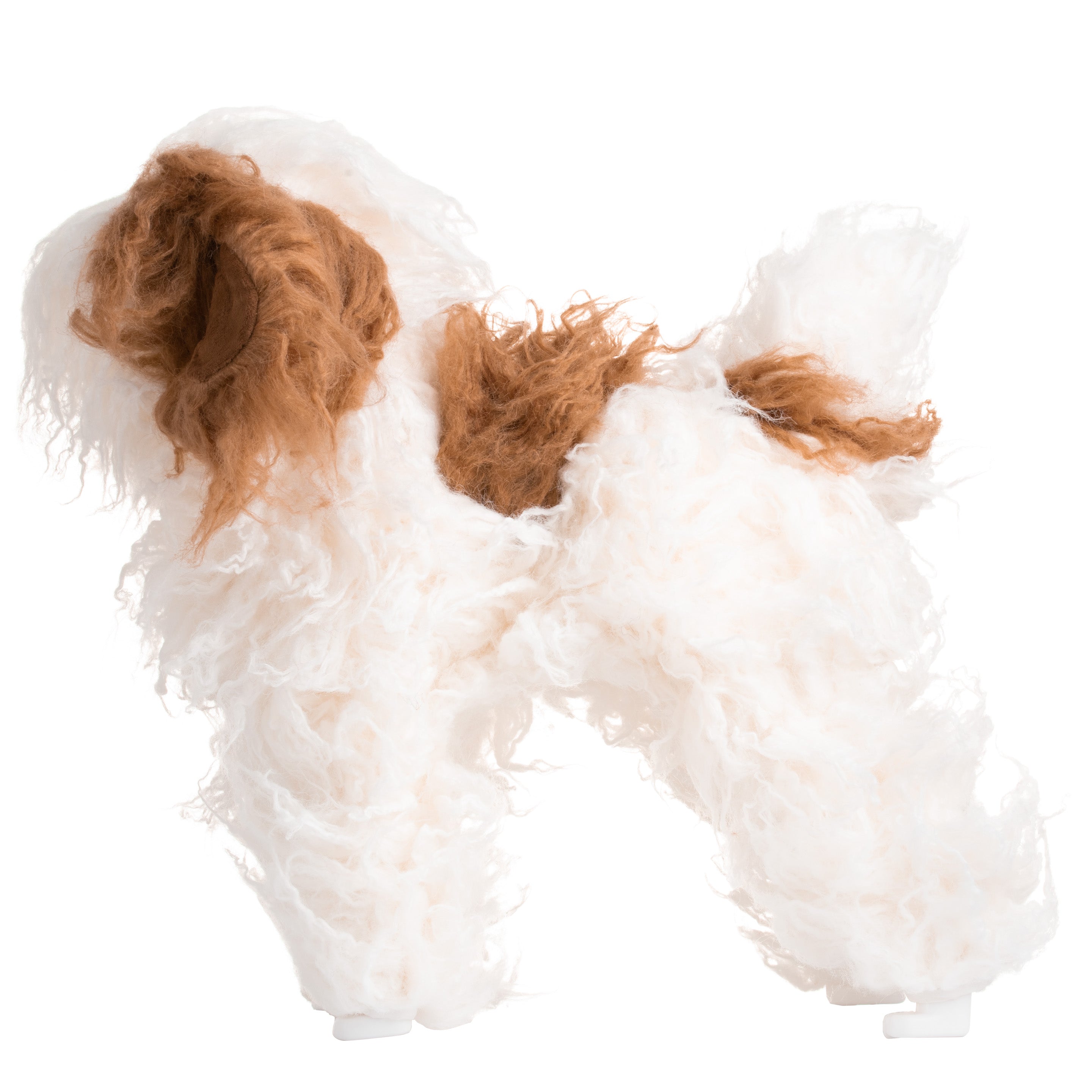 Mr. Jiang's coat is designed to protect the scissor blade while mimicking a dog's natural hair. Made of high-quality Hi-pile material, it has a hair length of 11-12.5 cm. You can style it however you like, for example, to create a teddy bear look, and dye it with blowers or an airbrush. You can also use decorative elements to complement your creation, such as bows, clips, ribbons, etc.
