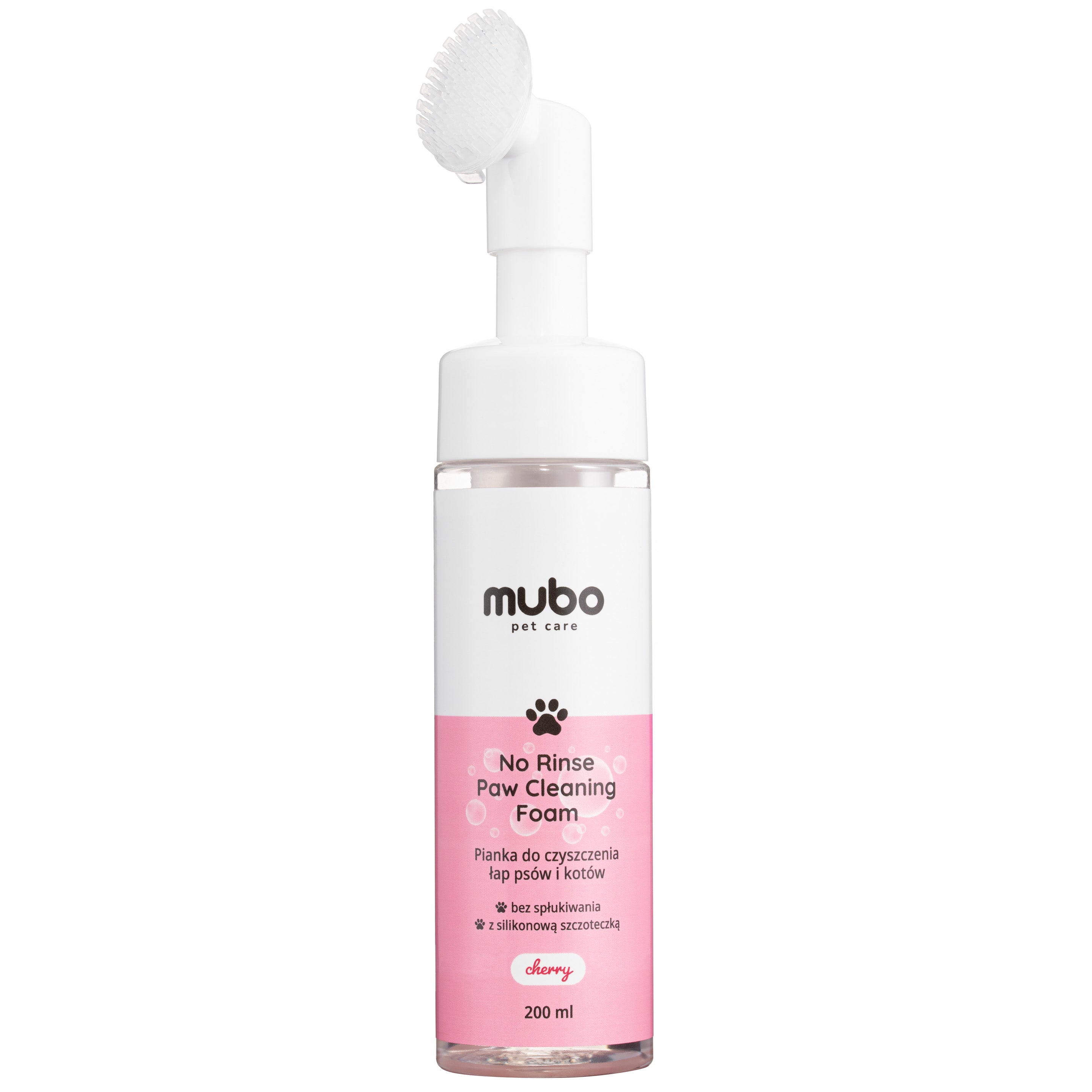Mubo No Rinse Paw Cleaning Foam Cherry is a vegan, pH-balanced foam for dogs and cats, perfect for cleaning paws without water.
