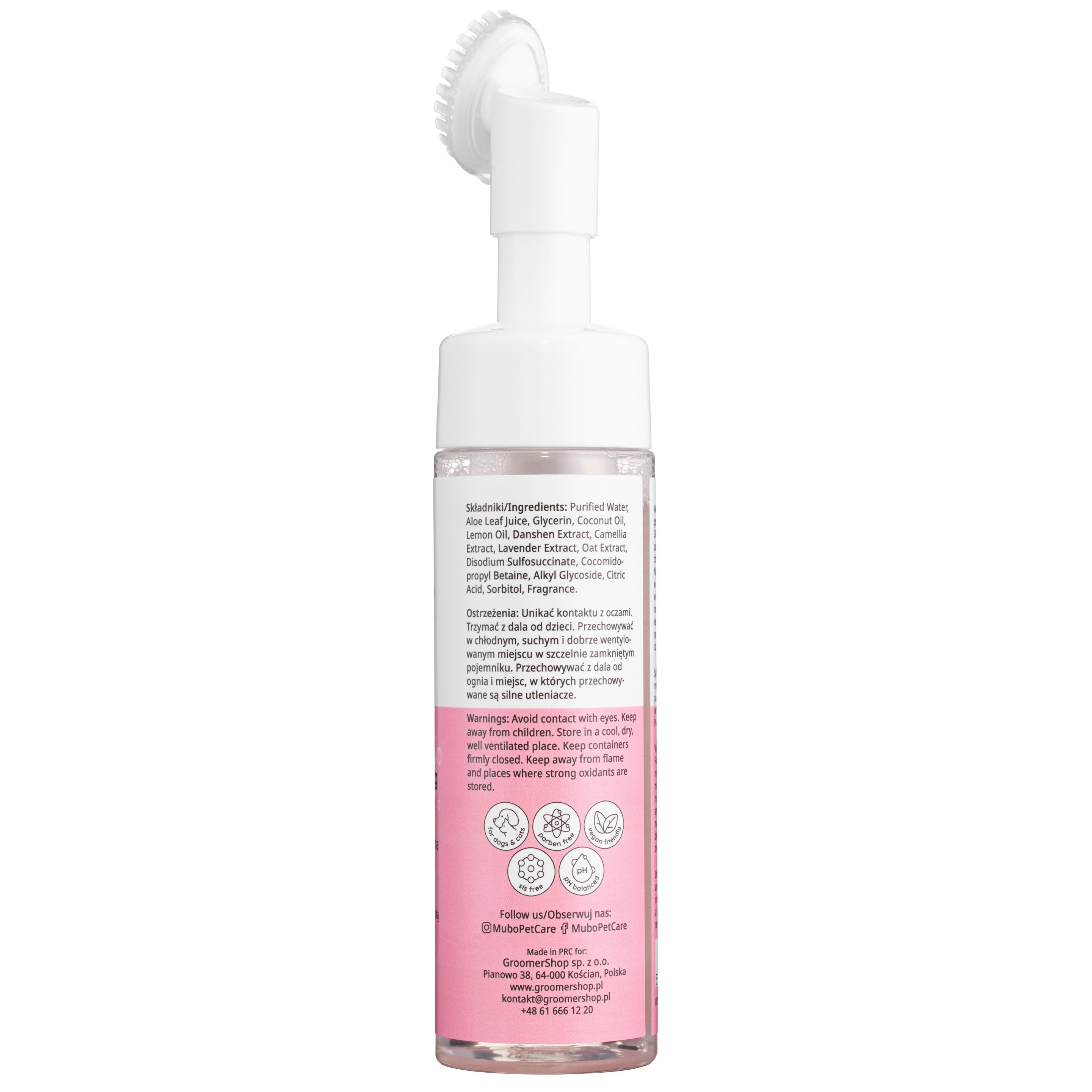 This product requires no rinsing, is easy to use, and is perfect for use anywhere, anytime. It is indispensable for a quick wash after a walk, while traveling, or just before a show. The applicator with a silicone brush makes applying the foam easy. Its soft bristles gently massage your pet's paws, reaching between the pads to remove even the most stubborn dirt.
