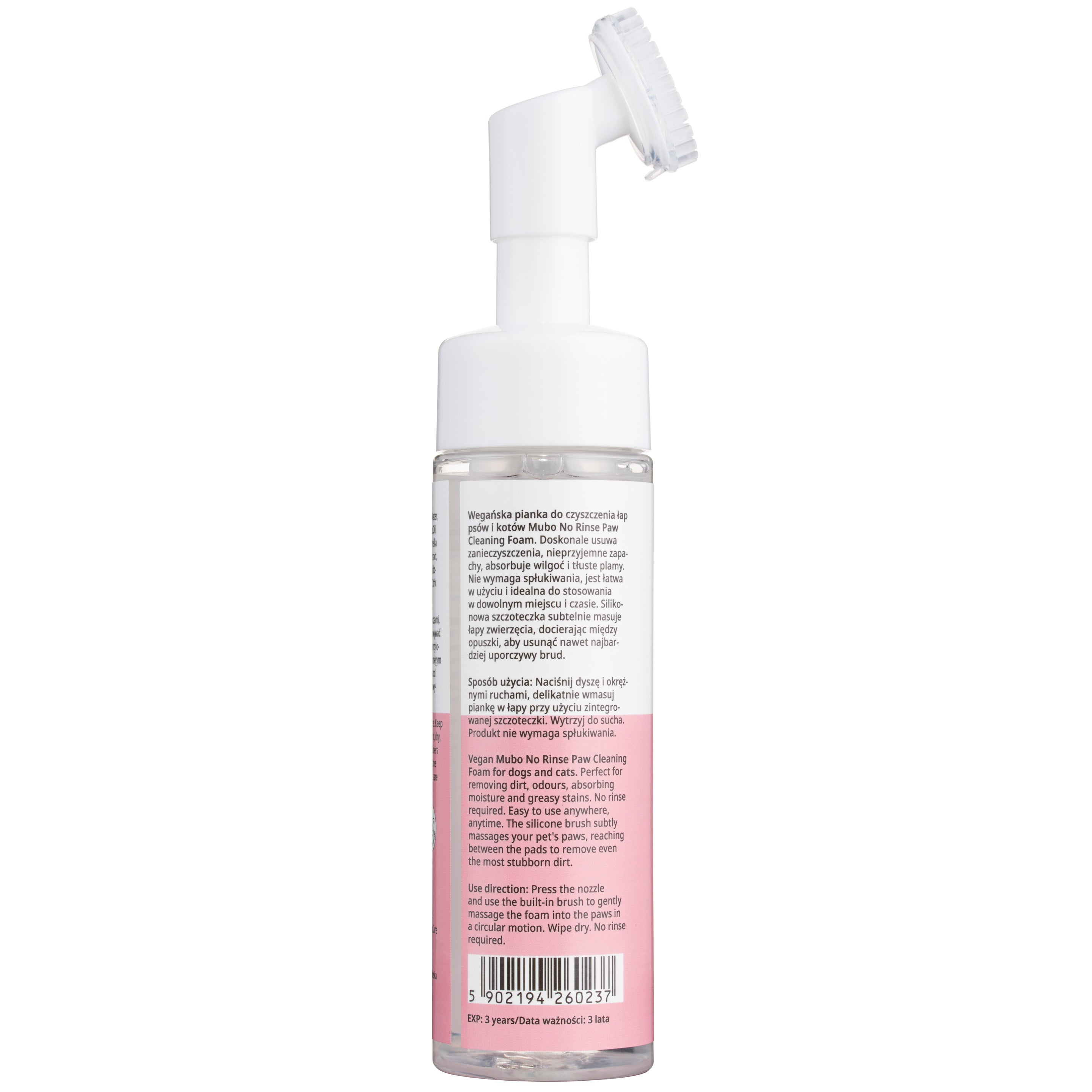 Mubo No Rinse Paw Cleaning Foam – Watermelon Scent, 200ml, Quick Wash Formula