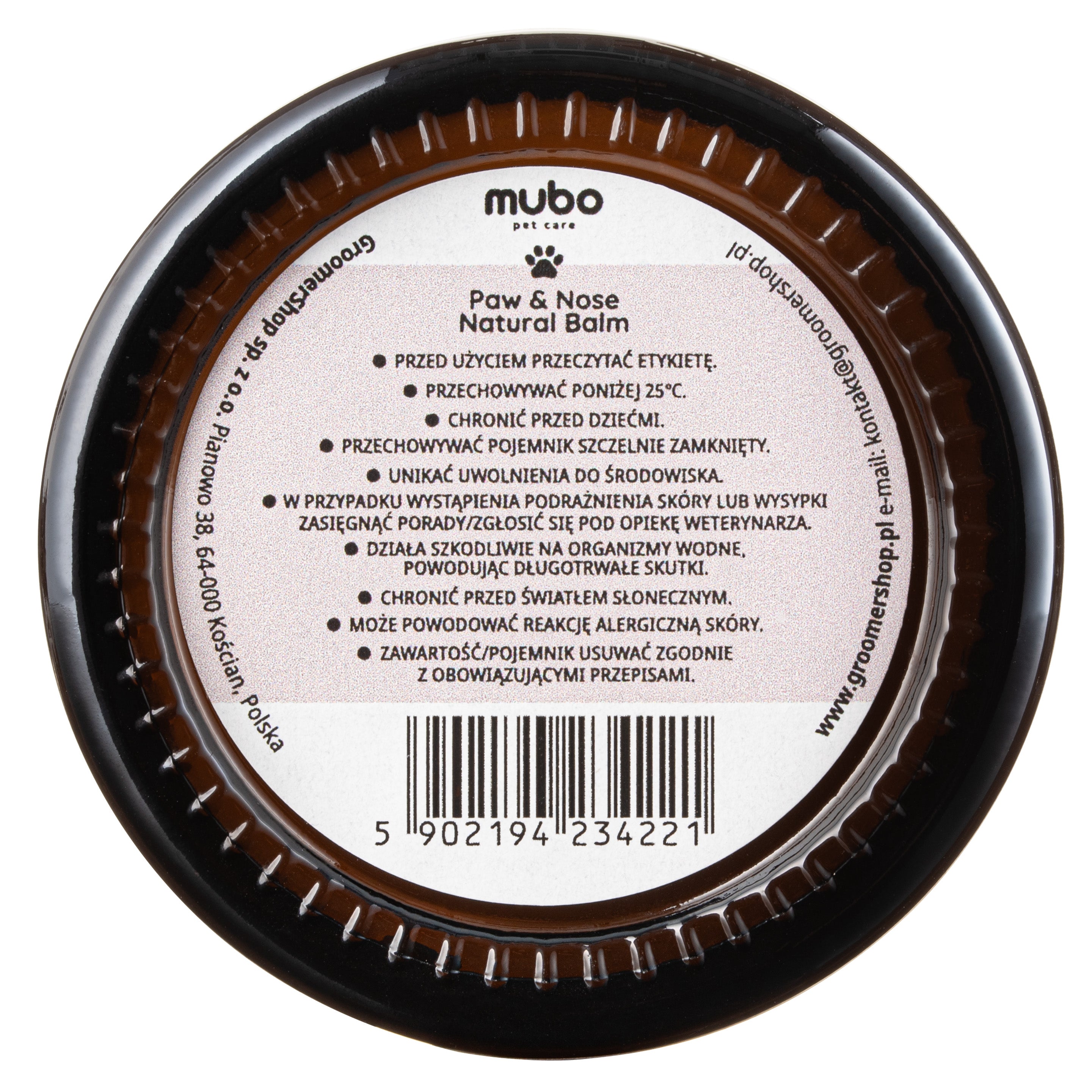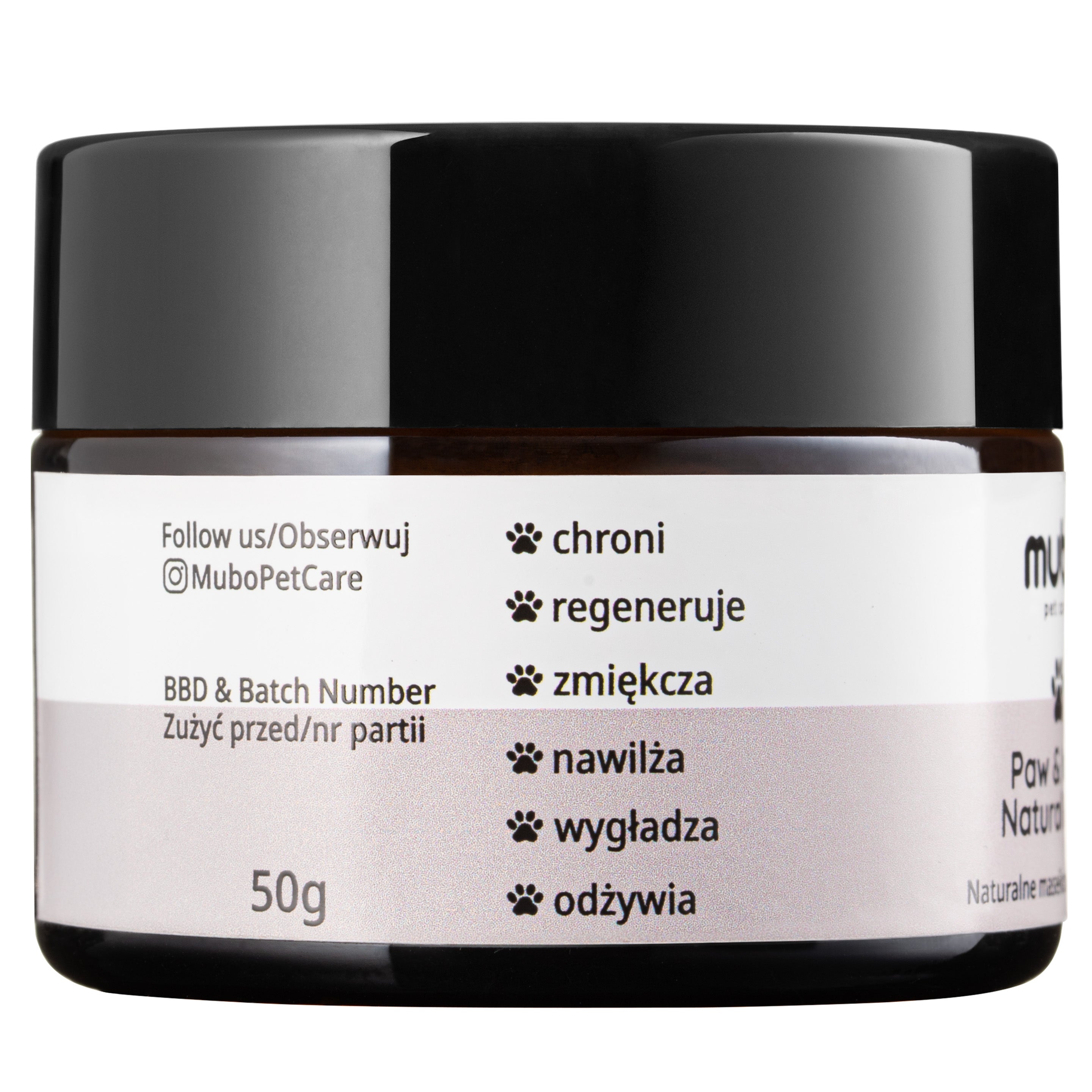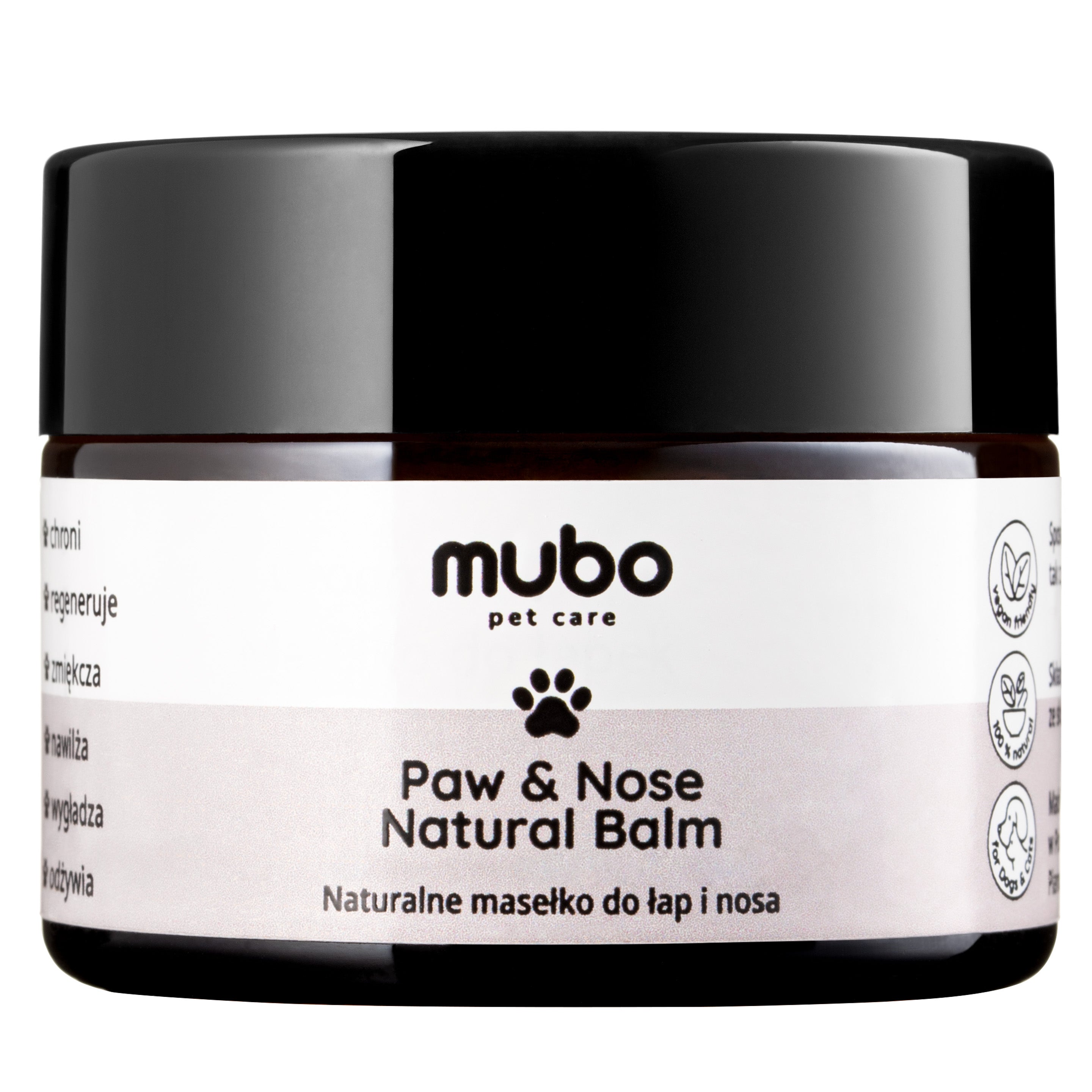 Note: Our Mubo Paw & Nose Natural Balm butters are 100% natural and handmade in Poland. The artisanal production method and the use of only natural ingredients mean that individual batches may vary slightly in shade, texture, or how the product is packaged in the jar. This does not affect the quality or effectiveness of the product.