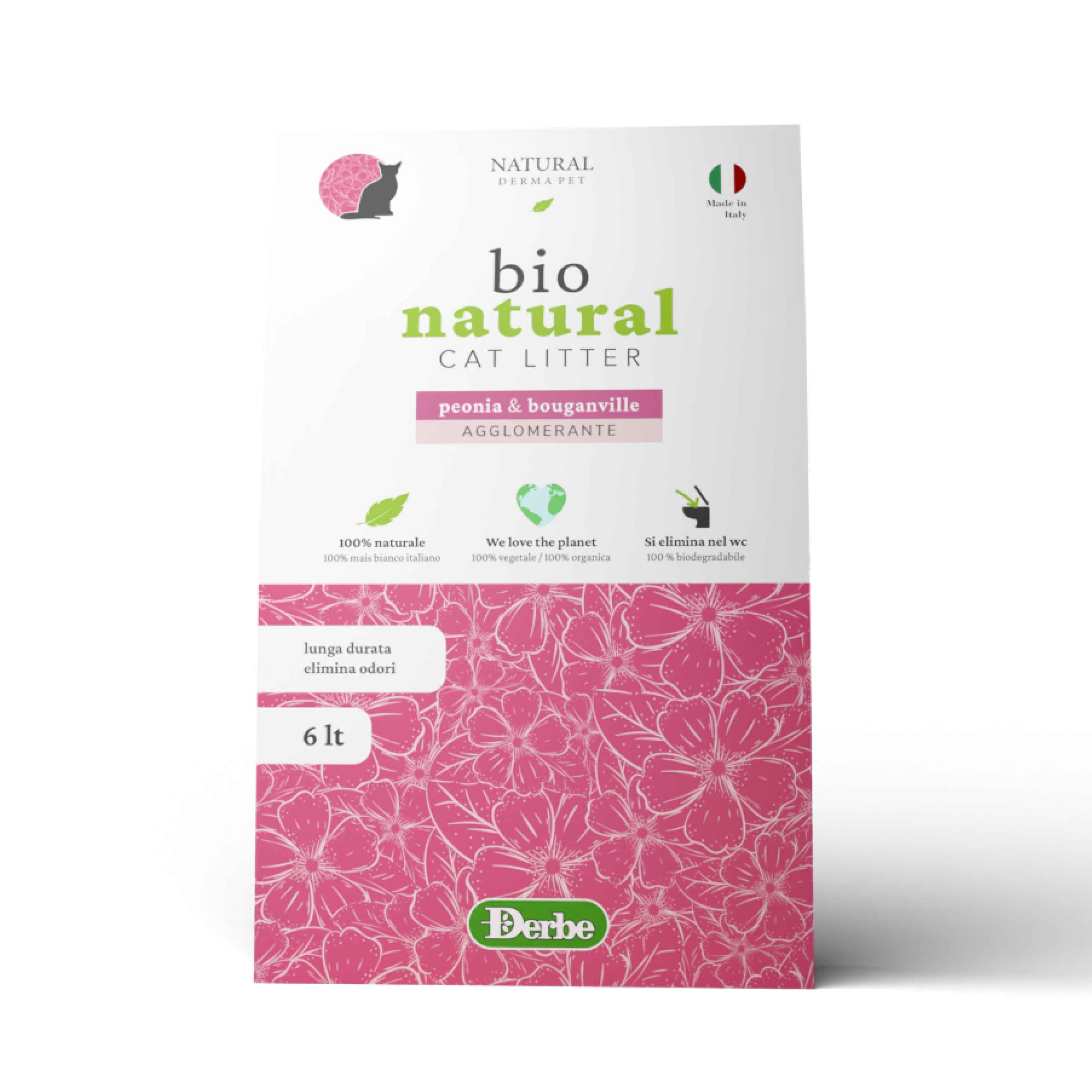 Natural Derma Pet Cat Litter PEONY & BOUGANVILLE is a 100% natural, biodegradable, and floral-scented litter made from Italian white corn. It provides superior clumping, excellent odor control, and a gentle botanical fragrance that enhances comfort and freshness for cats and their families.
