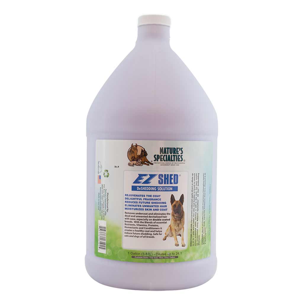 Nature's Specialties EZ Shed DeSheeding Solution is a dog and cat conditioner designed to reduce shedding and nourish the coat with natural ingredients.