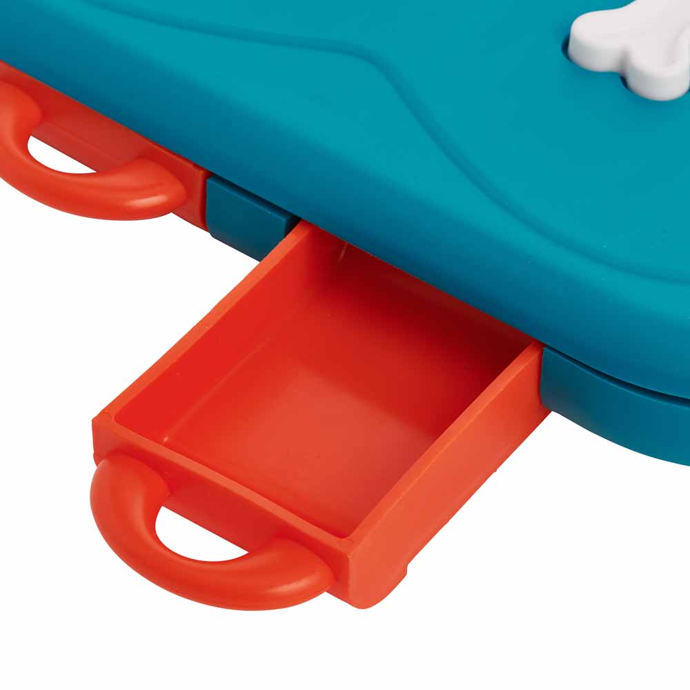 Start the game by opening the drawer and filling the 24 compartments with treats or dry food. Then encourage your pet to explore the toy. By sniffing and using their paw or mouth, your dog will discover compartments, which they will need to unlock before reaching for the treats hidden within. The locking/unlocking system is achieved by turning the cube on top. Find out if your four-legged friend has the makings of a genius and is ready to tackle the next level of Nina Ottosson's games!
