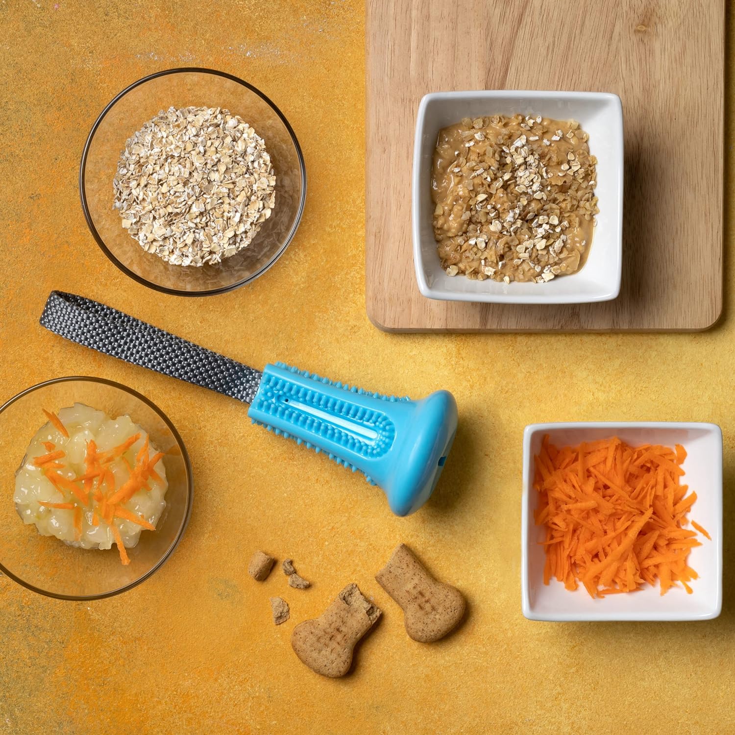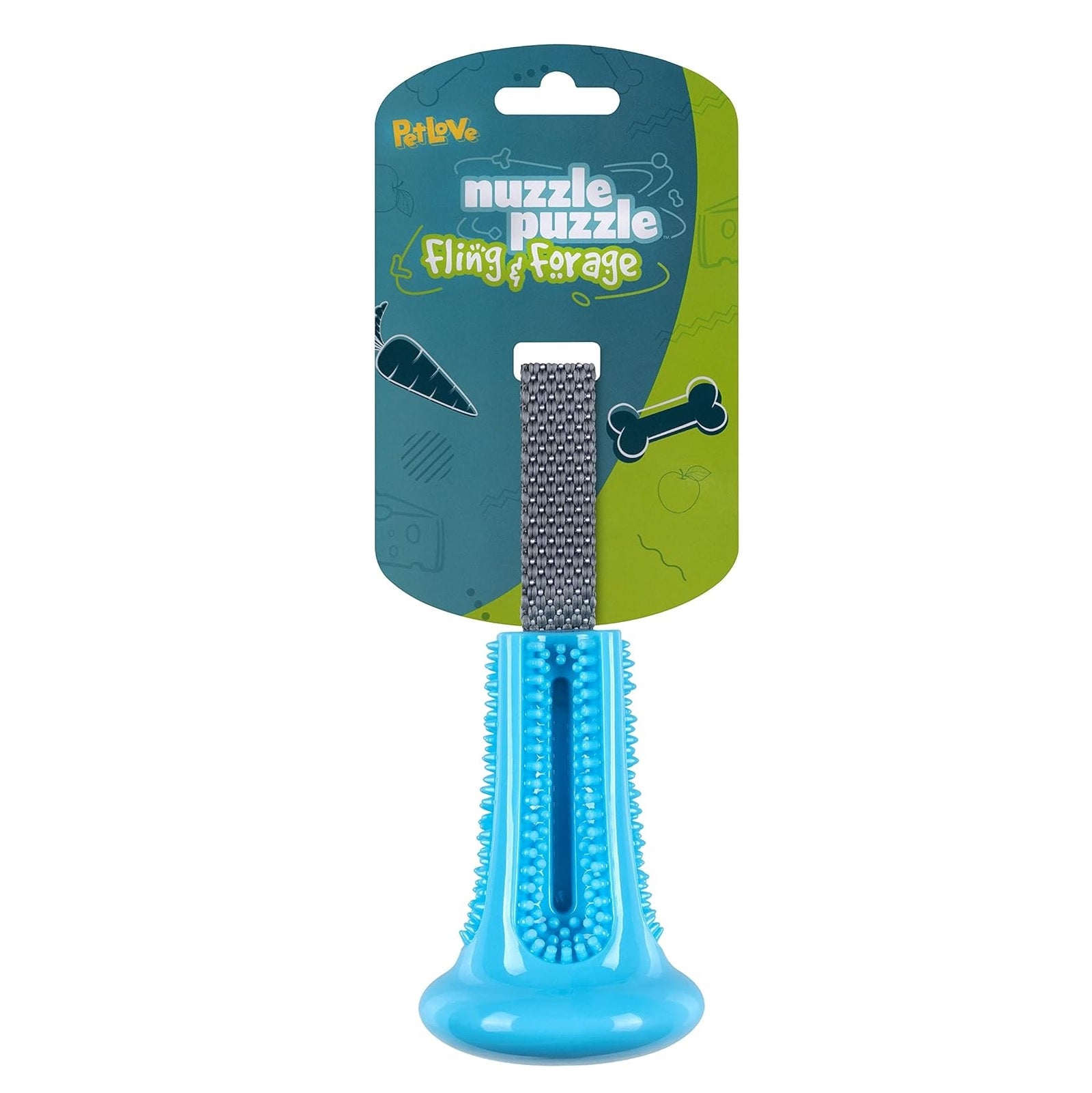 Note: Nuzzle Puzzle Fling N Forage is a line of dog toys with tape handles for tugging and fetching, and treat slots. They are flexible and float, but not suitable for intense biting or chewing. Supervise your dog while playing and check the condition of the toy. Remove any damage immediately. Before giving the toy to your dog for the first time, remove all packaging.