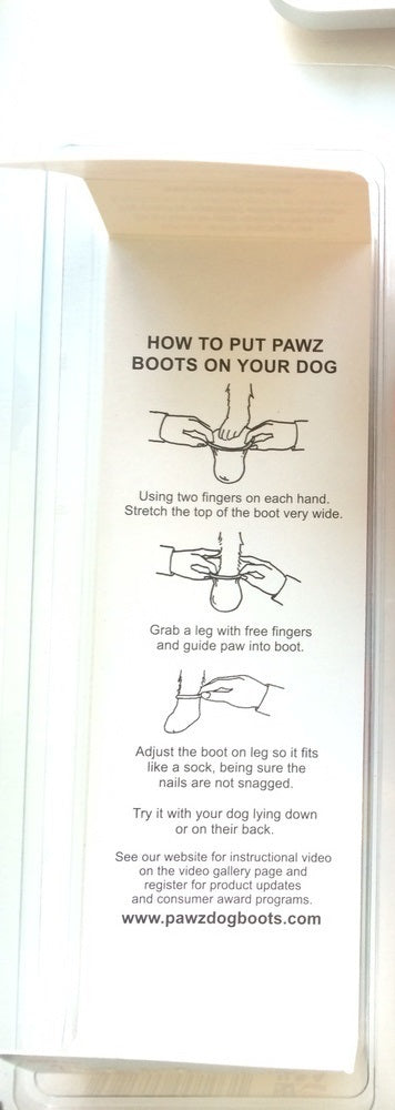 PAWZ dog boots are designed to be easy to put on and fit snugly without the need for zippers or straps. They are perfect for dog shows to keep your dog clean and are essential for every dog owner. These boots lack padding, allowing your dog to feel the ground, which provides a sense of security. The boots move with your dog like a sock, allowing for full paw movement and maximum comfort.