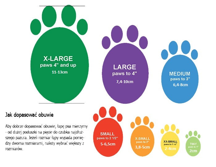 For a proper fit, measure your dog's paw from the longest heel pad to the tip of the longest claw. If the paw size falls between two sizes, choose the larger size.