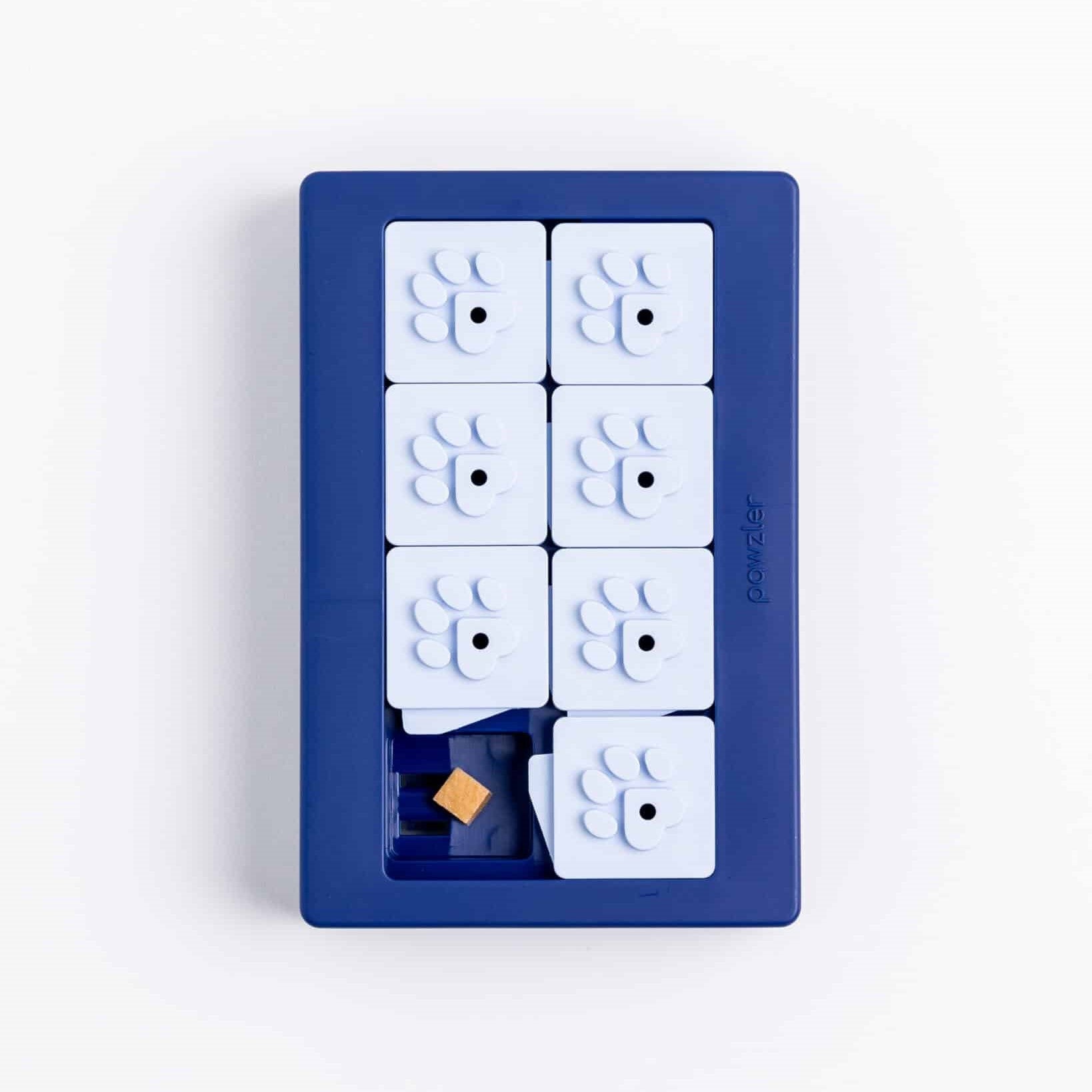 Pawzler is a modular puzzle with compartments for dog treats, designed for hours of entertainment and mental stimulation. These interactive dog toys provide your pet with endless playtime.