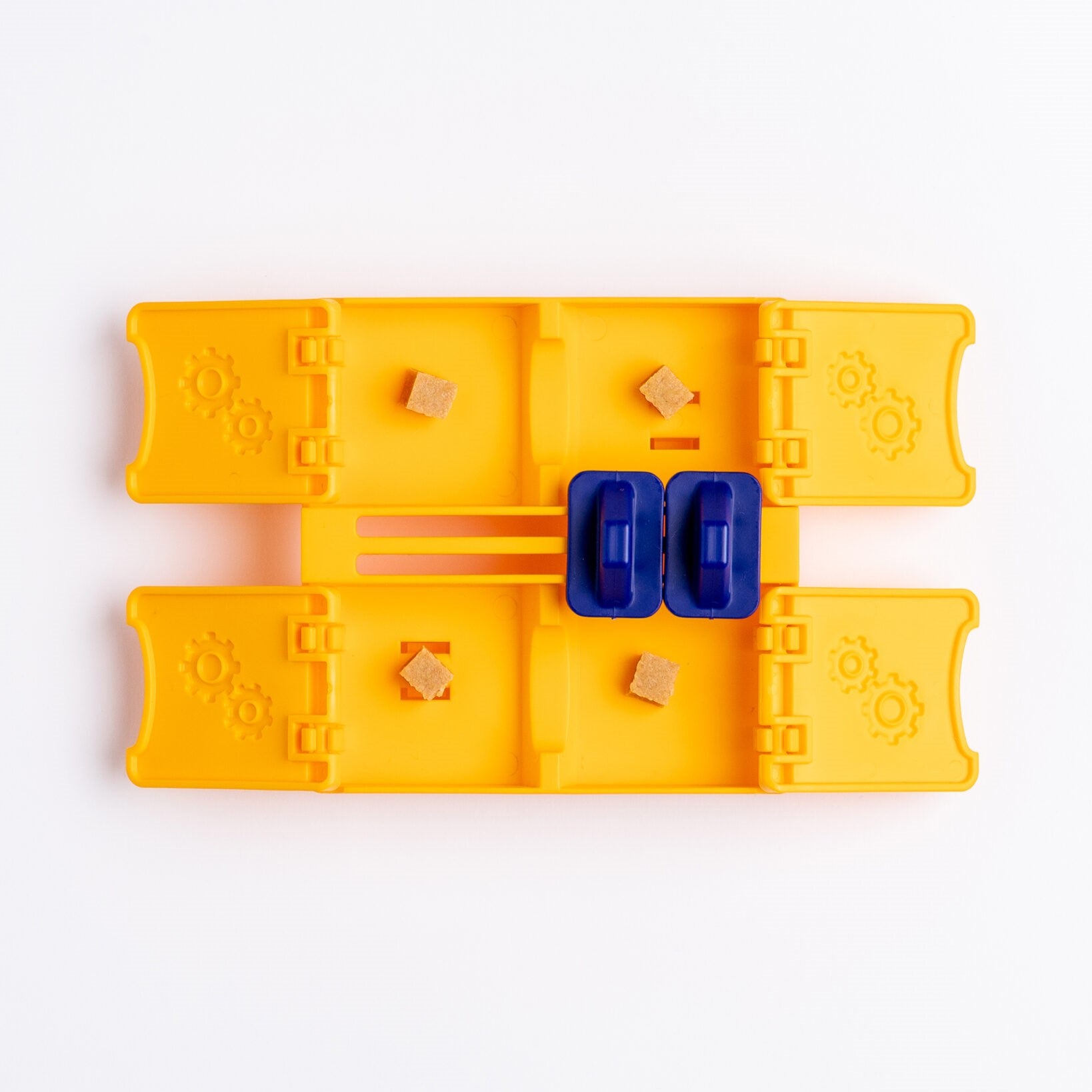 Place the module on the base and press until it clicks. Fill the compartment with your dog's favorite treats, food, or peanut butter, place the whole thing on a stable surface, and watch your dog discover and earn hidden rewards. Next time, rearrange the modules on the base to create a new challenge for your pet.