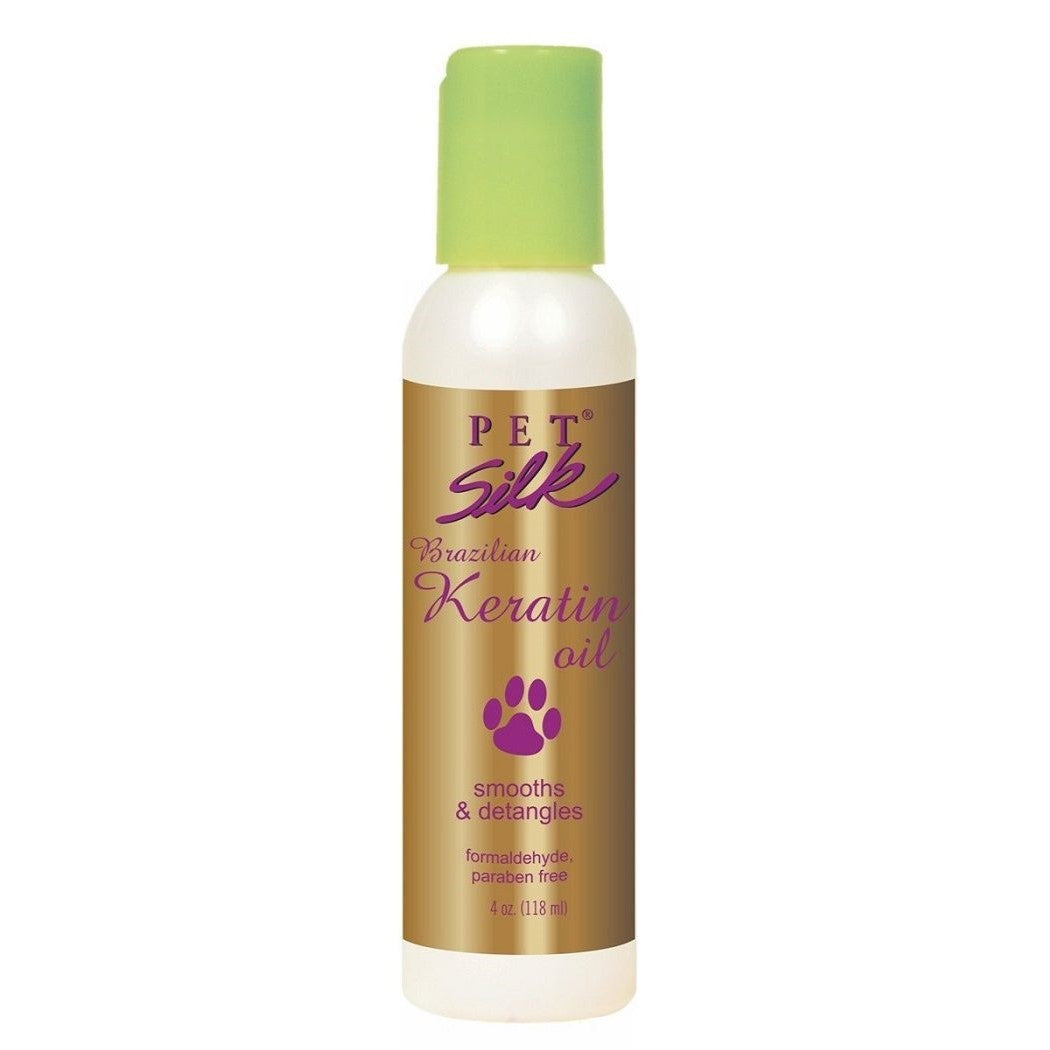 Pet Silk Brazilian Keratin Oil is a professional moisturizing coat oil for dogs and cats, enhancing coat health and shine with natural ingredients.