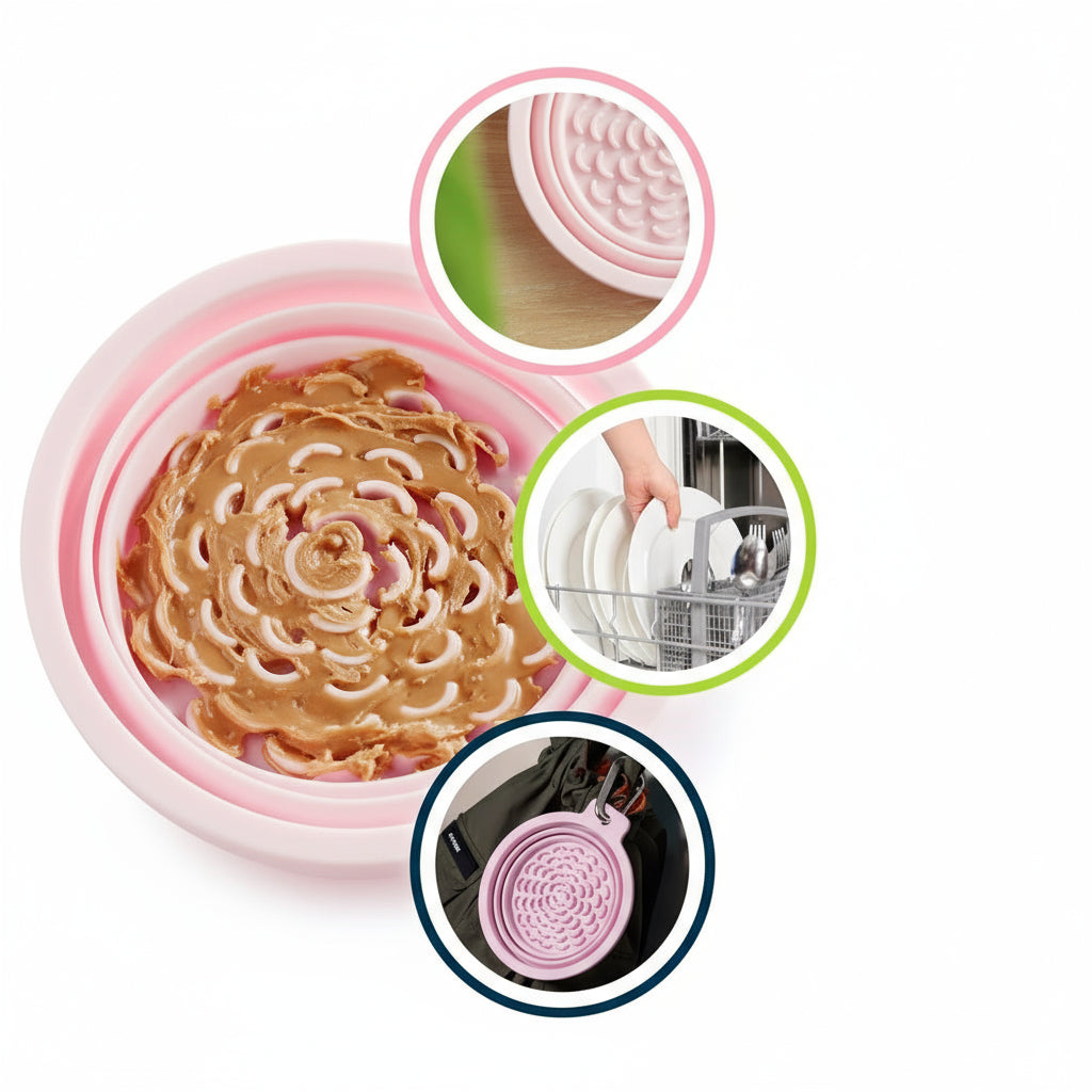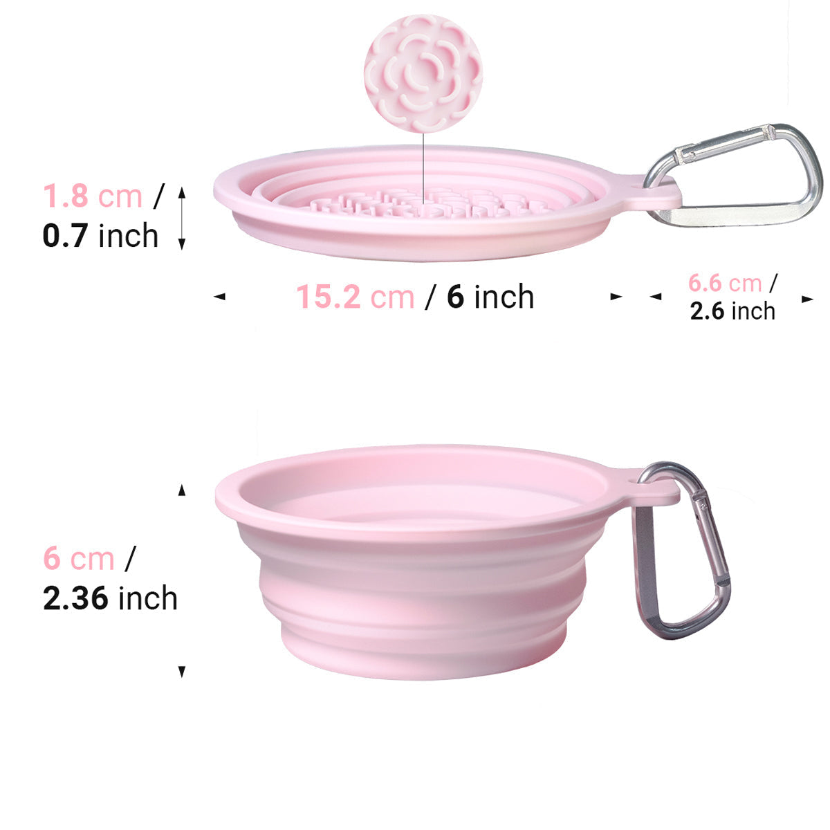 PetDreamHouse Silicone Collapsible Travel Bowl – Foldable 600ml Navy Blue with Lick Mat and Carabiner