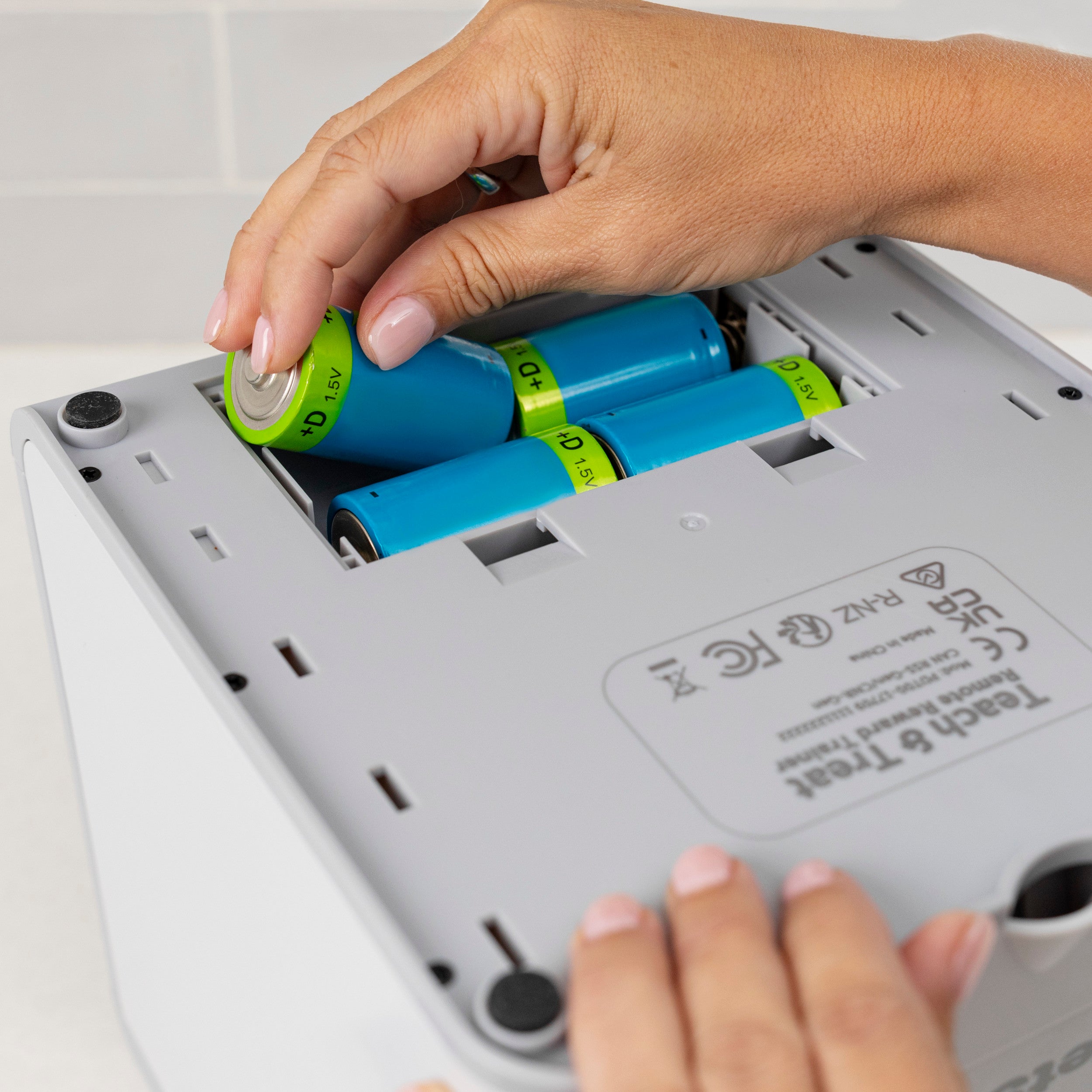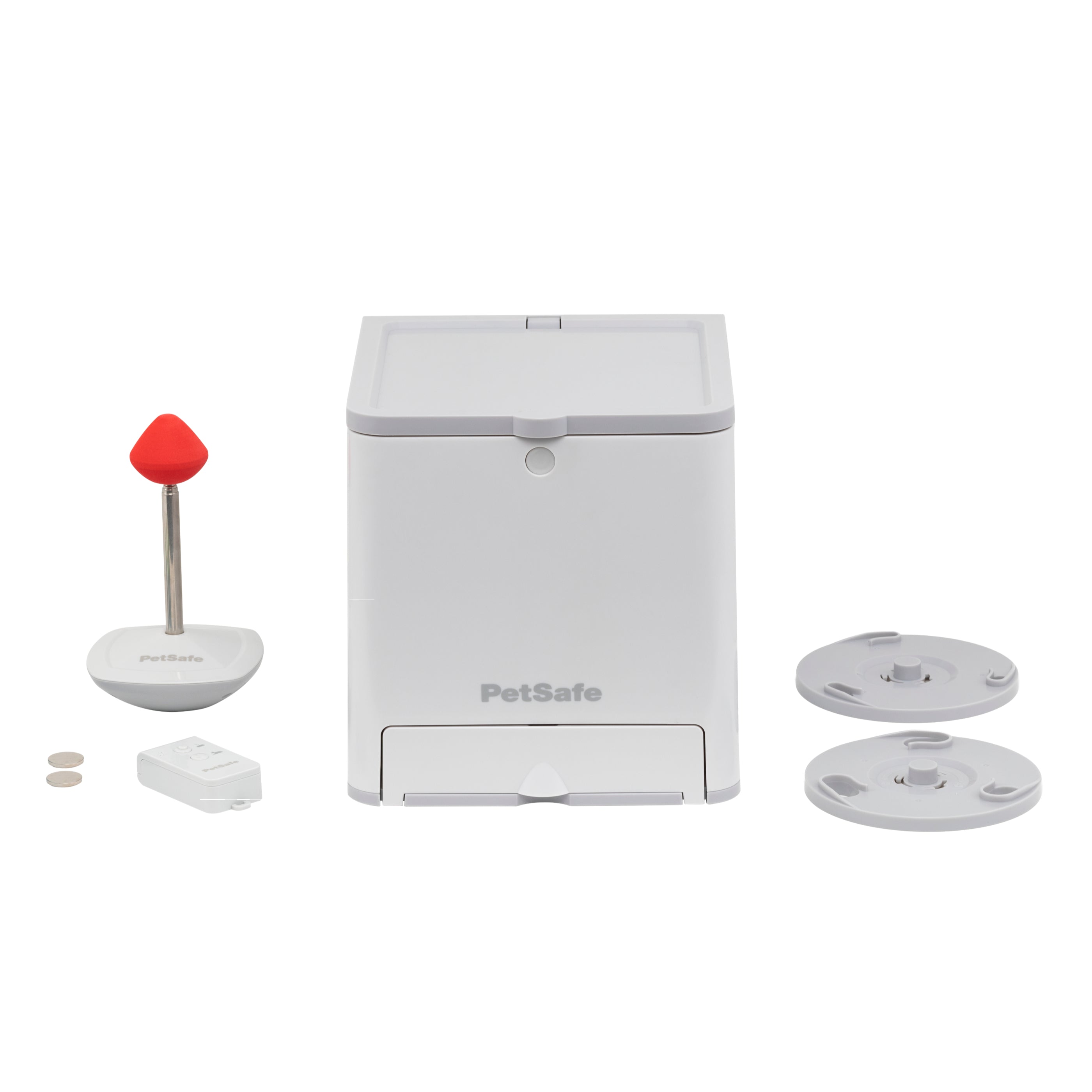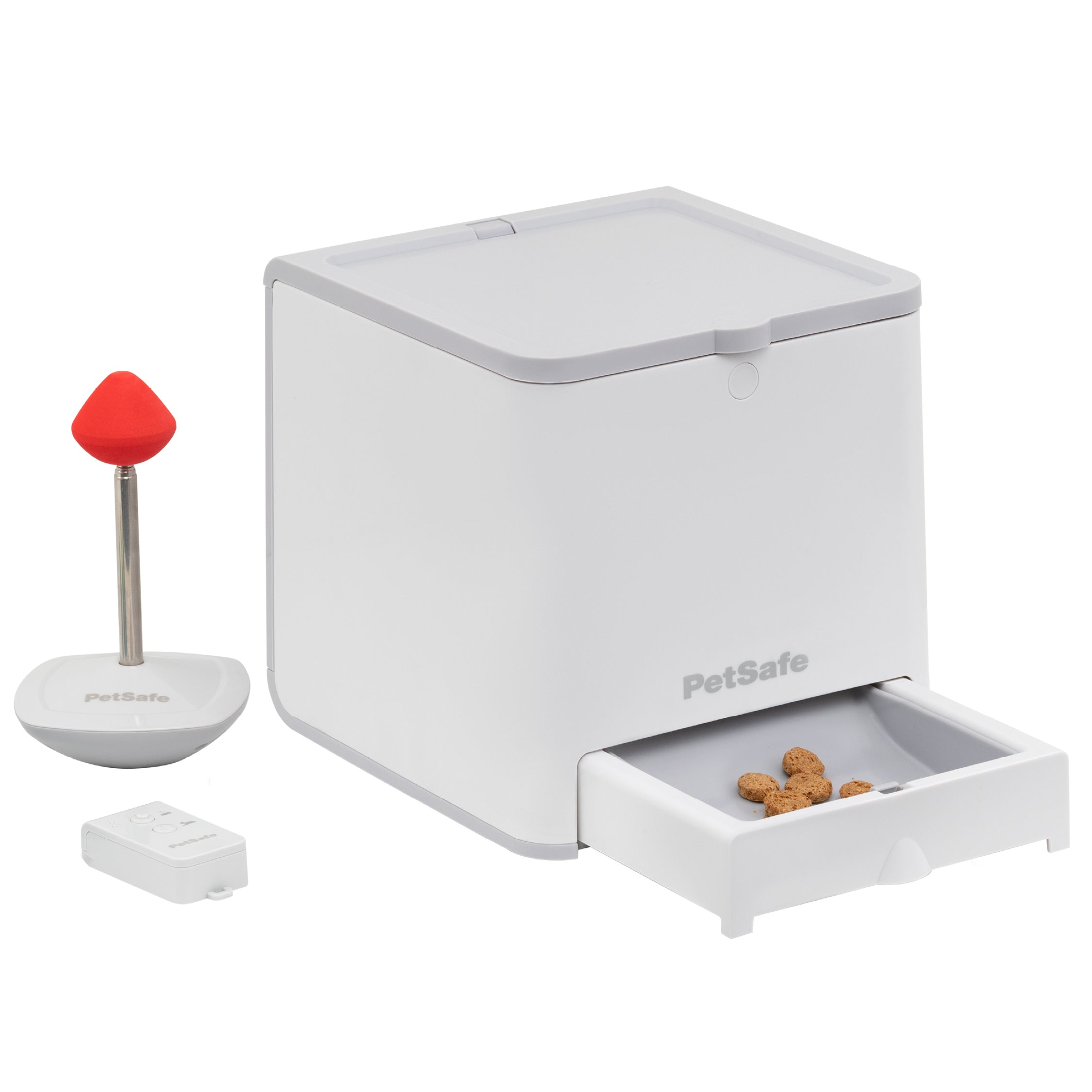 The PetSafe Teach & Treat Remote Reward Trainer is an electronic training tool that helps teach obedience commands, break undesirable habits (e.g., jumping on guests), or reward positive behavior. It allows you to reward your dog with treats or dry food at the touch of a button, making it exceptionally convenient and effective. By allowing you to deliver rewards remotely, you increase your dog's potential for good behavior throughout the home, not just at your side.