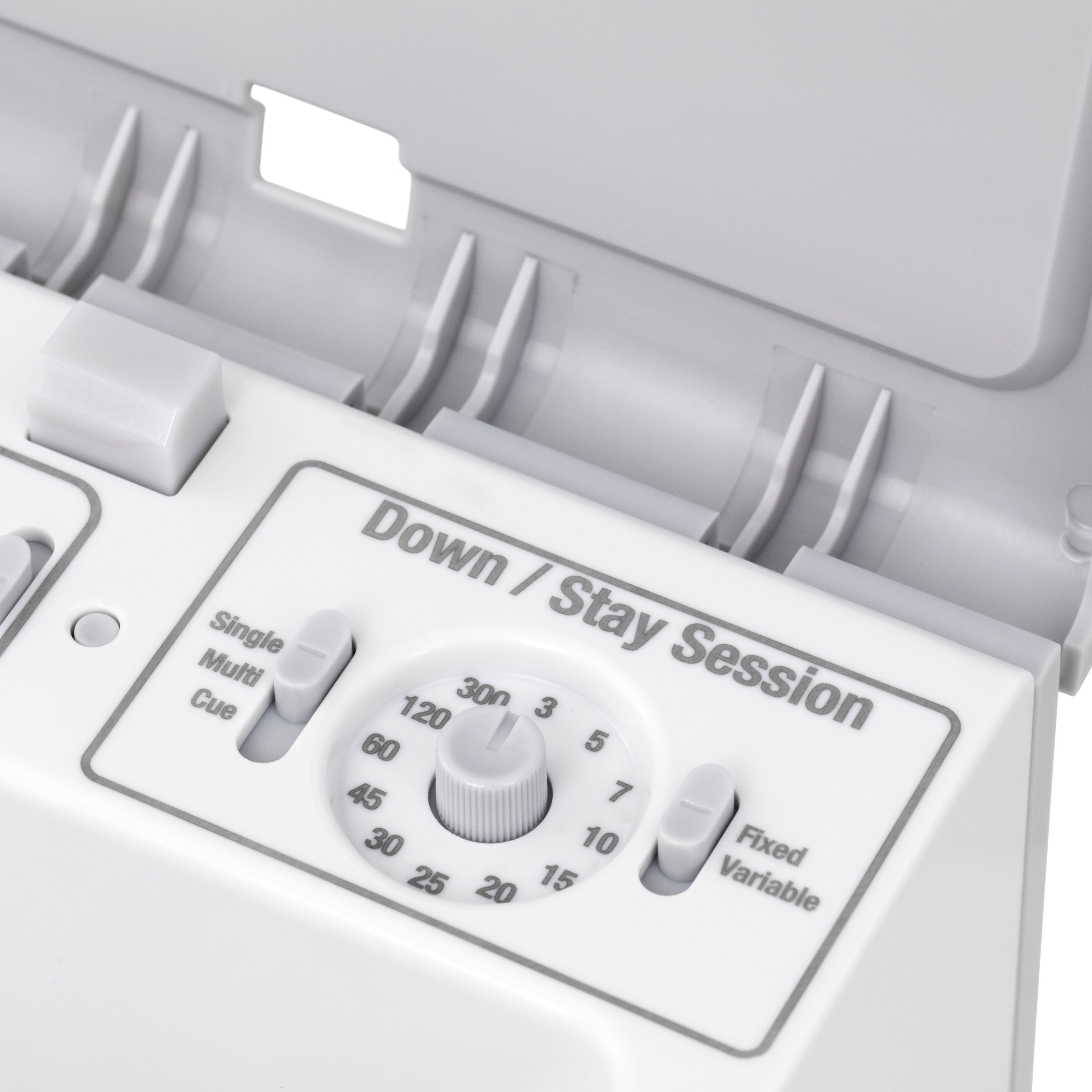 A key element of the Teach & Treat system is its versatility and adaptability to your dog's individual training needs. The device has three treat dispensing modes: in "Single" mode, the dispenser dispenses one treat at a time; in "Multi" mode, it dispenses three treats; and in "Cue" mode, treats are only released when you press the appropriate button on the remote (with a bowl icon). The device can be operated with or without an audible signal, allowing for the gradual introduction of stimuli and building positive associations with the animal.